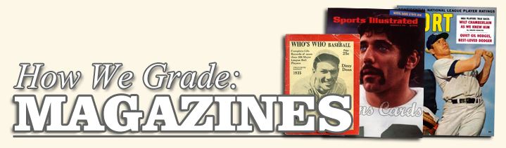 This document details how we grade magazines, newspapers, yearbooks, media guides and other types of books. The standards for grading magazines fall into two distinct categories: 1) Magazines (Sports Illustrated for example) that will displayed and 2) magazines, books or newspapers that will be read or used as a reference.