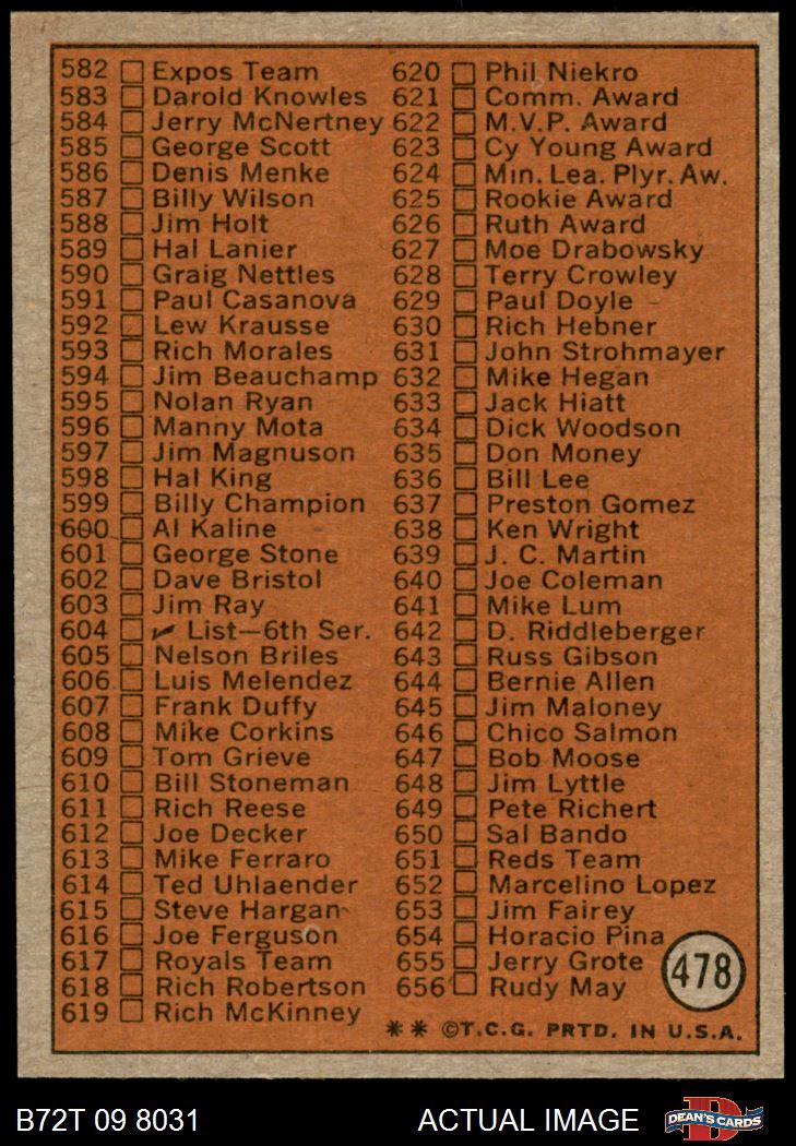 View all 1972 Topps #478 Font on front can either be large or small Checklist 5 cards