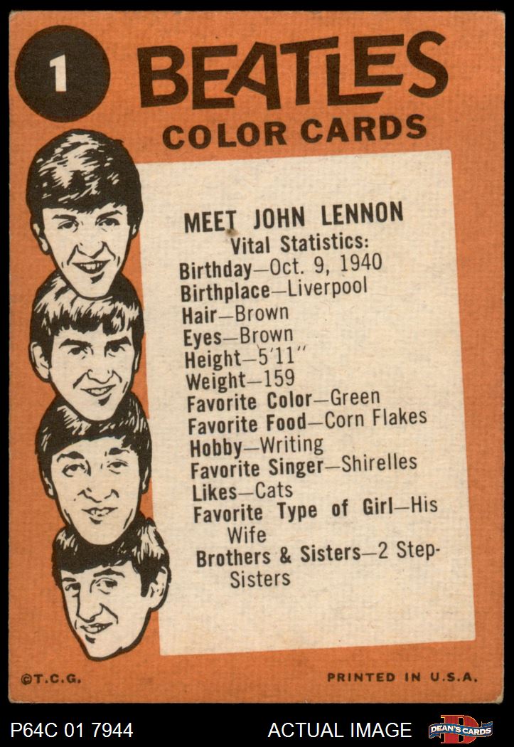 1964 Topps Beatles Color #1 Meet John Lennon - 4 (VG/EX
