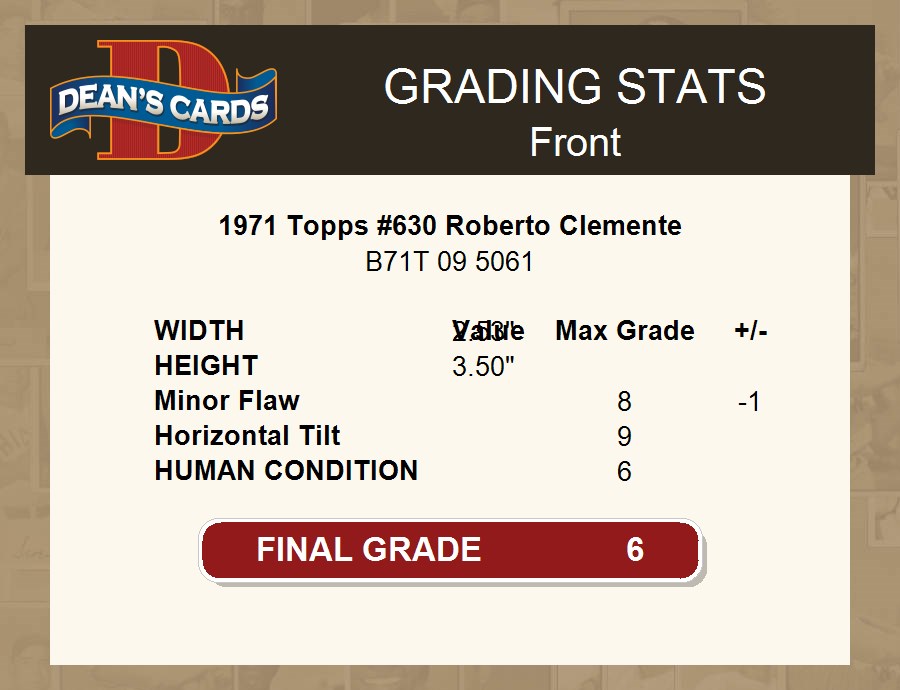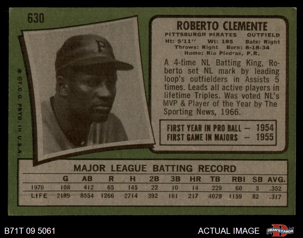 1971 Topps #630 Roberto Clemente - 6 (EX/MT)