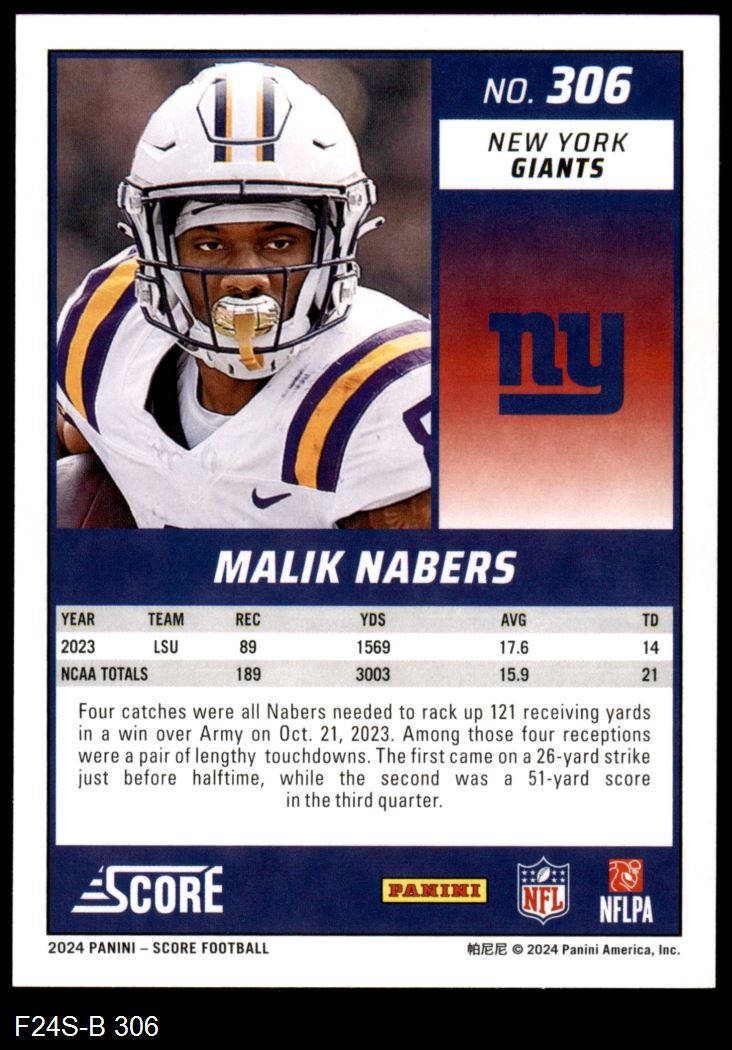2024 Score #306 Malik Nabers - 8 (NM/MT