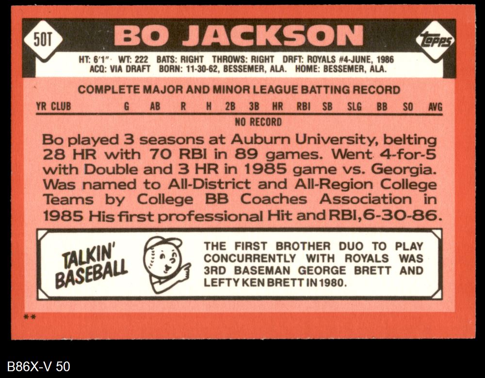 View all 1986 Topps Traded #50 T Bo Jackson cards