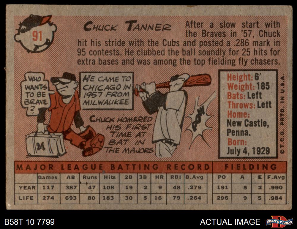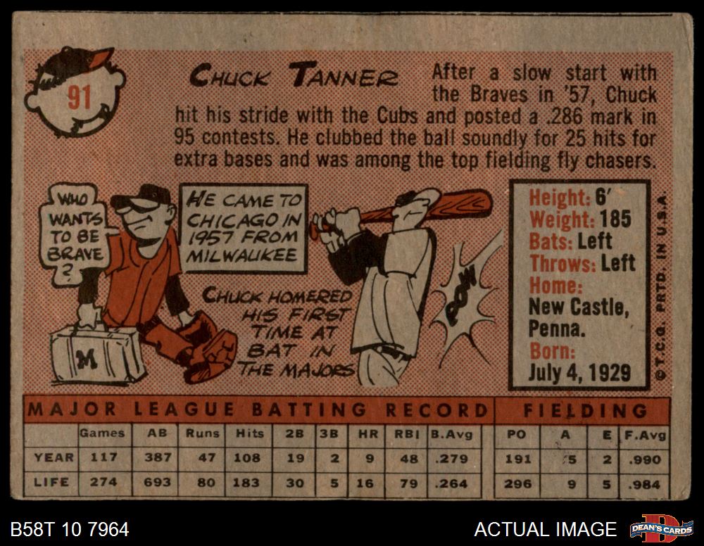 1958 Topps #91 Chuck Tanner 2 - GOOD