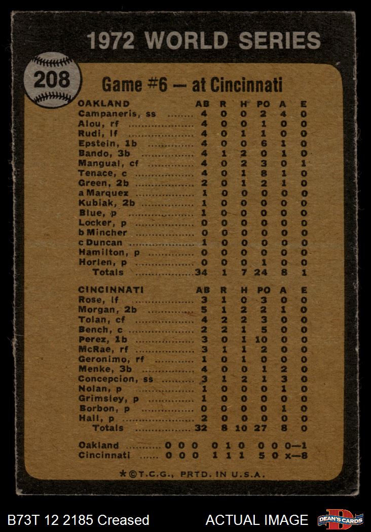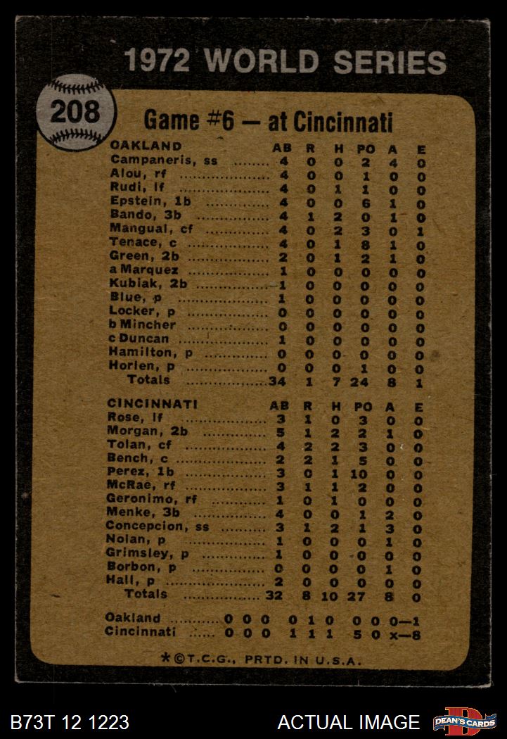 1973 Topps #208 1972 World Series - Game #6 - Reds' Slugging Ties Series