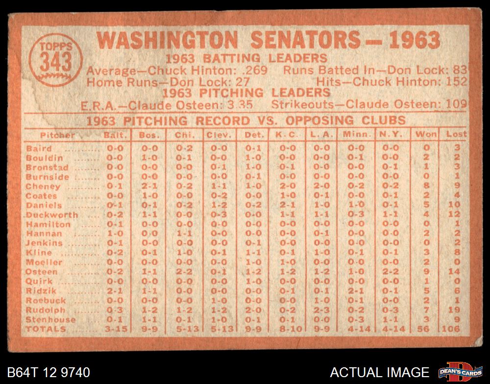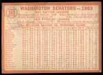 1964 Topps #343 Senators Team 1.5 - FAIR