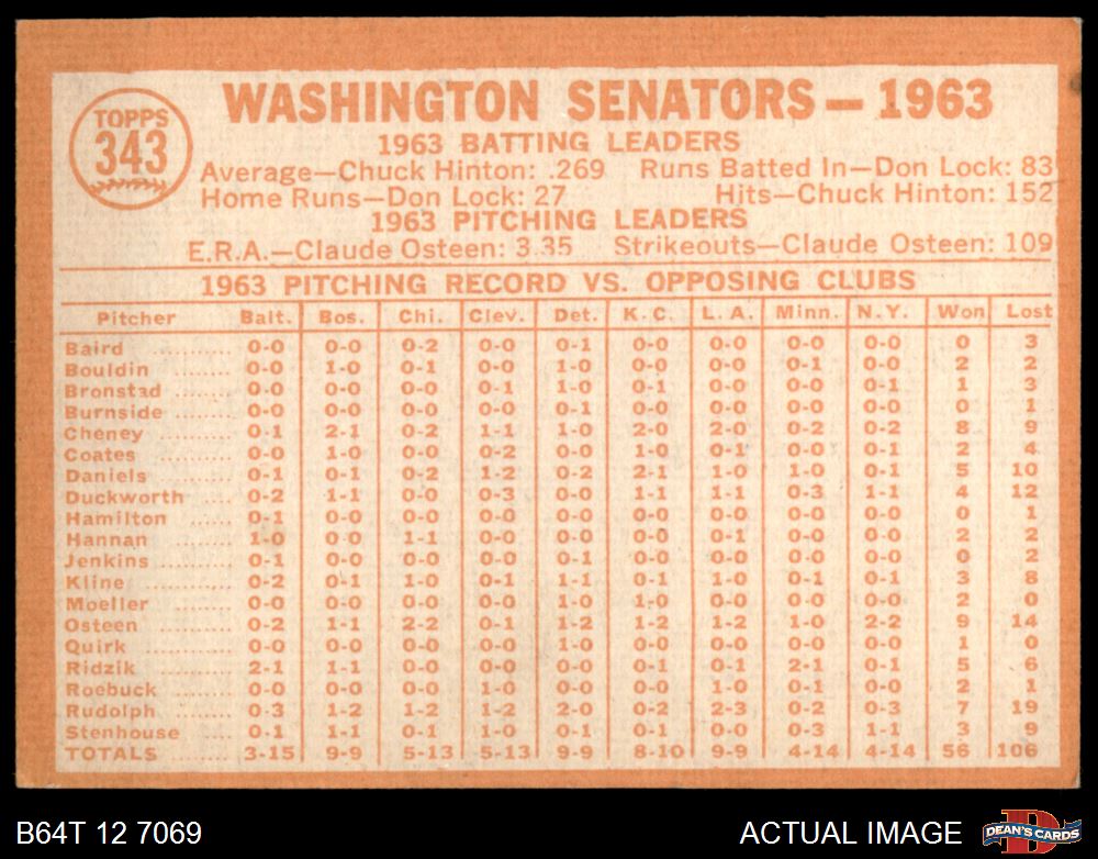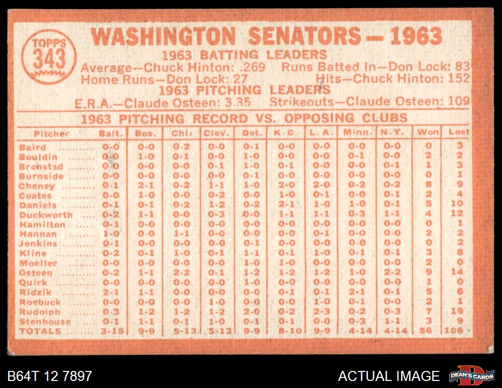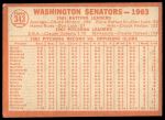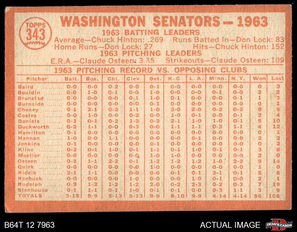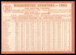 1964 Topps #343 Senators Team