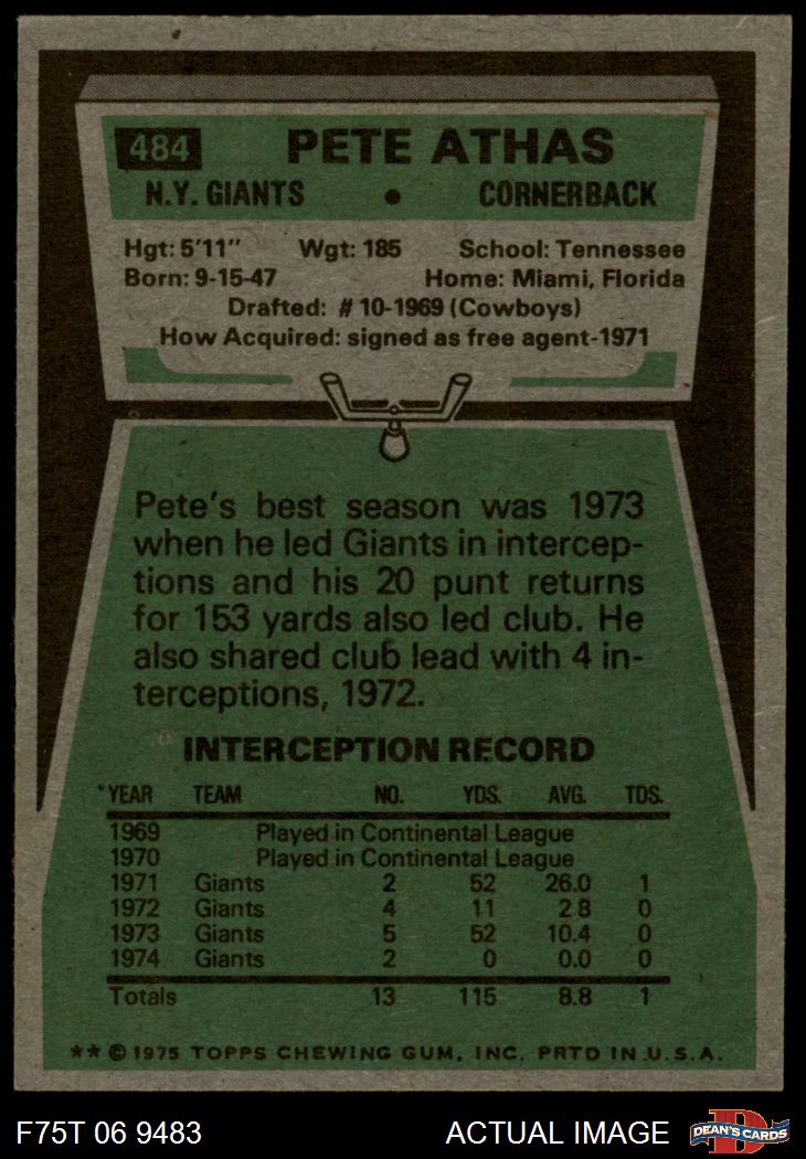 1975 Topps #484 Pete Athas 6 - EX/MT