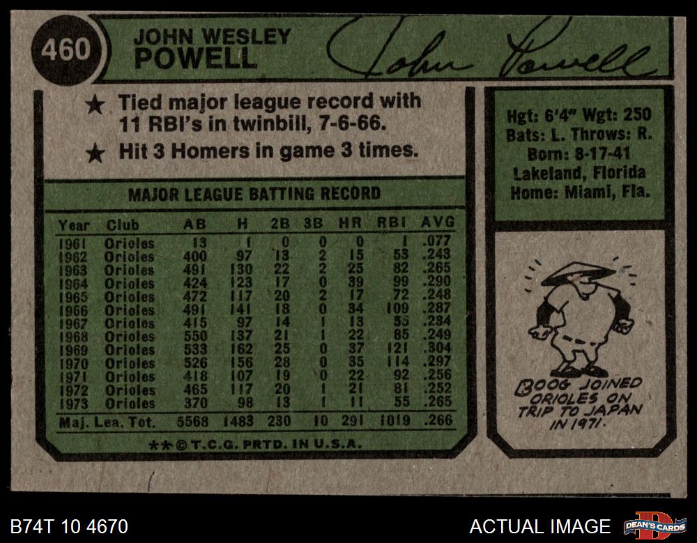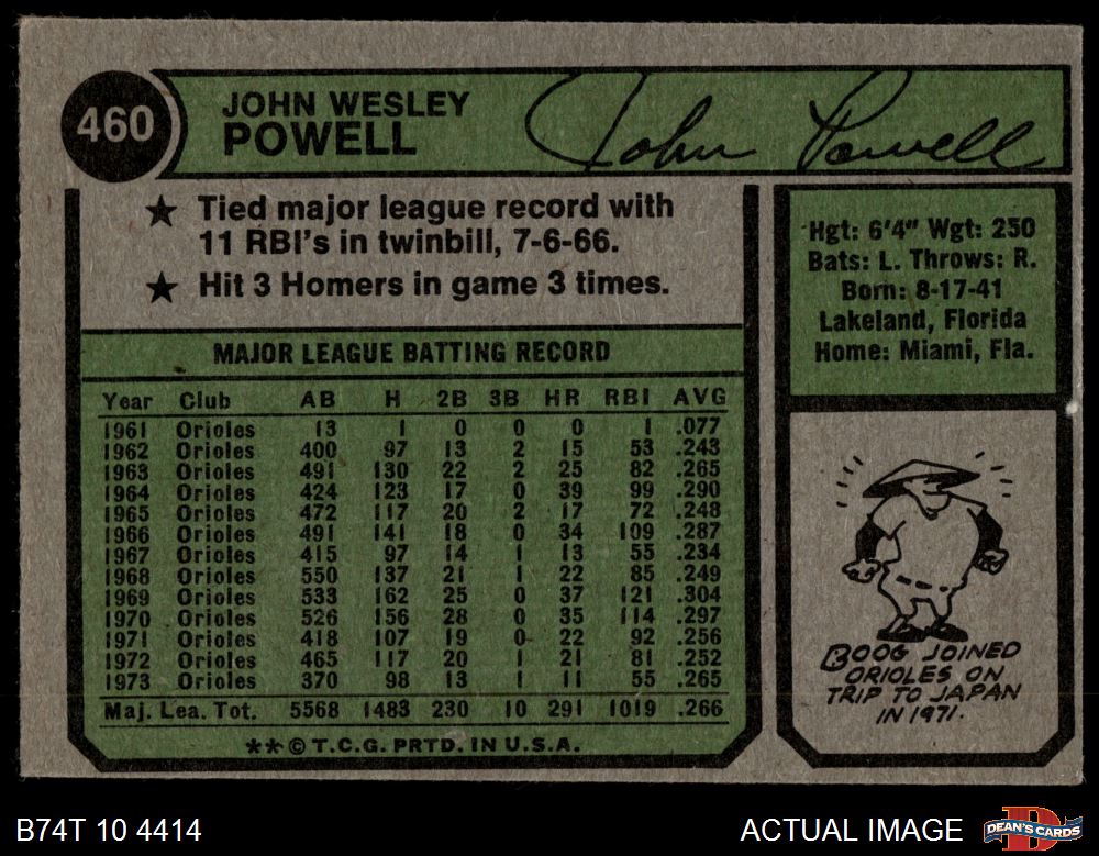 1974 Topps #460 Boog Powell 3 - VG