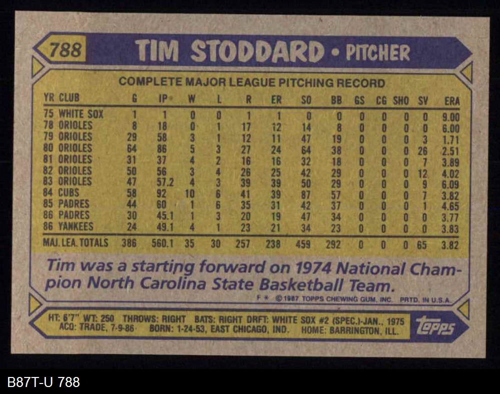 1987 Topps #788 Tim Stoddard 8 - NM/MT