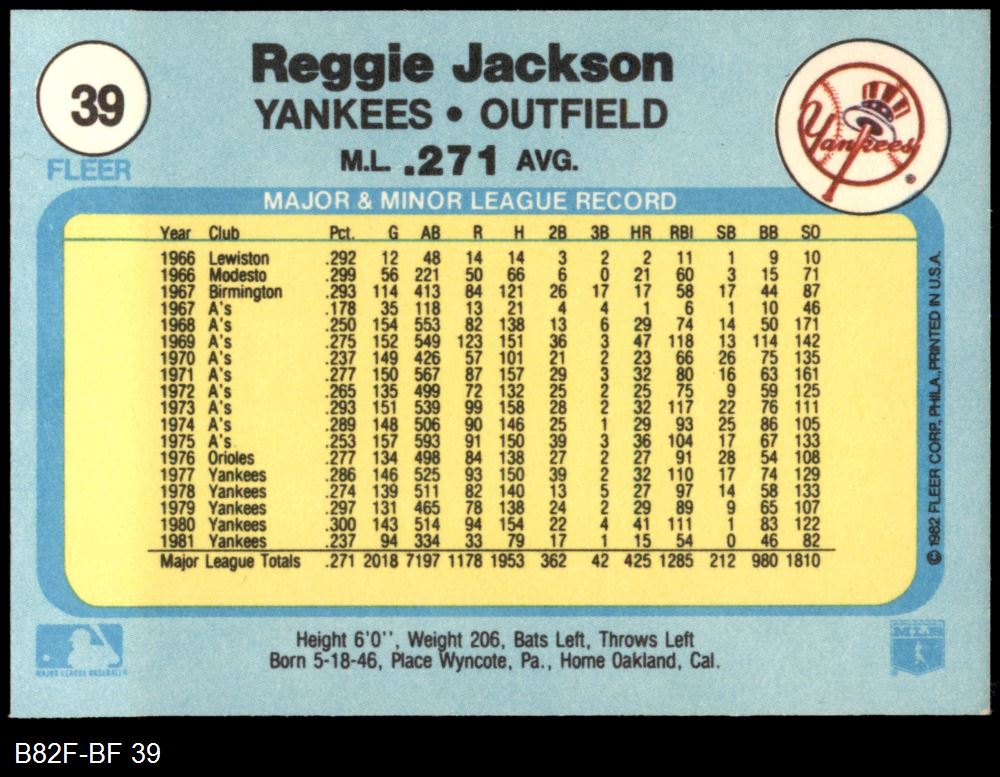 1982 Fleer #39 Reggie Jackson 8 - NM/MT