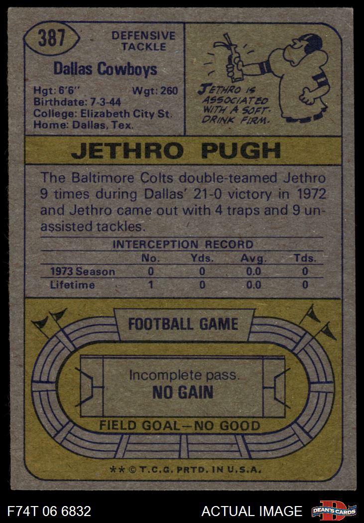 1974 Topps #387 Jethro Pugh 6 - EX/MT