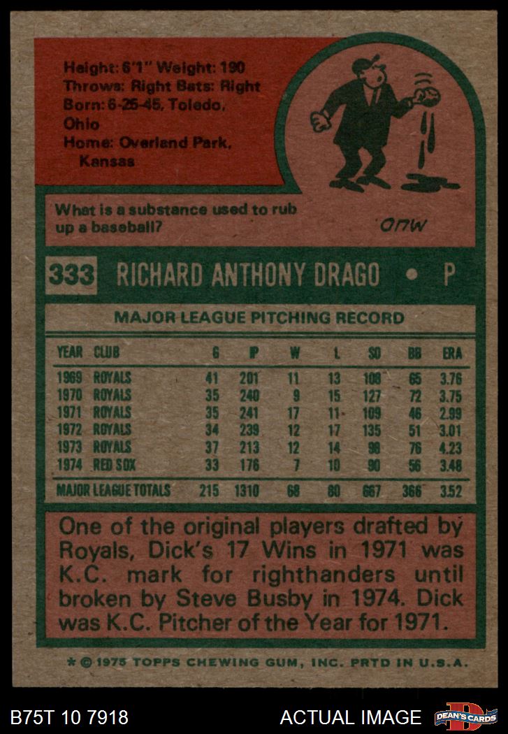 1975 Topps #333 Dick Drago 8 - NM/MT
