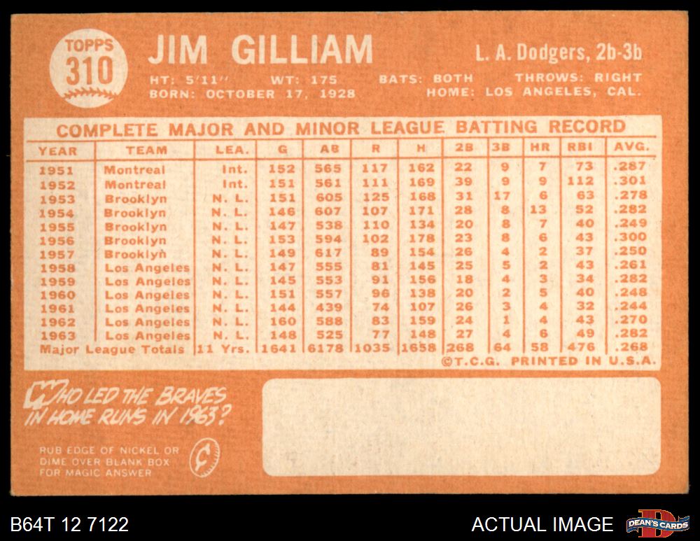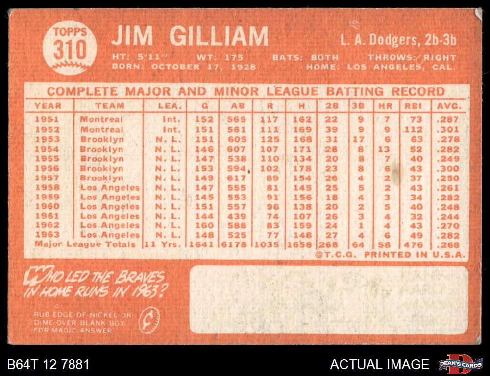 1964 Topps #310 Jim Gilliam Front Thumbnail