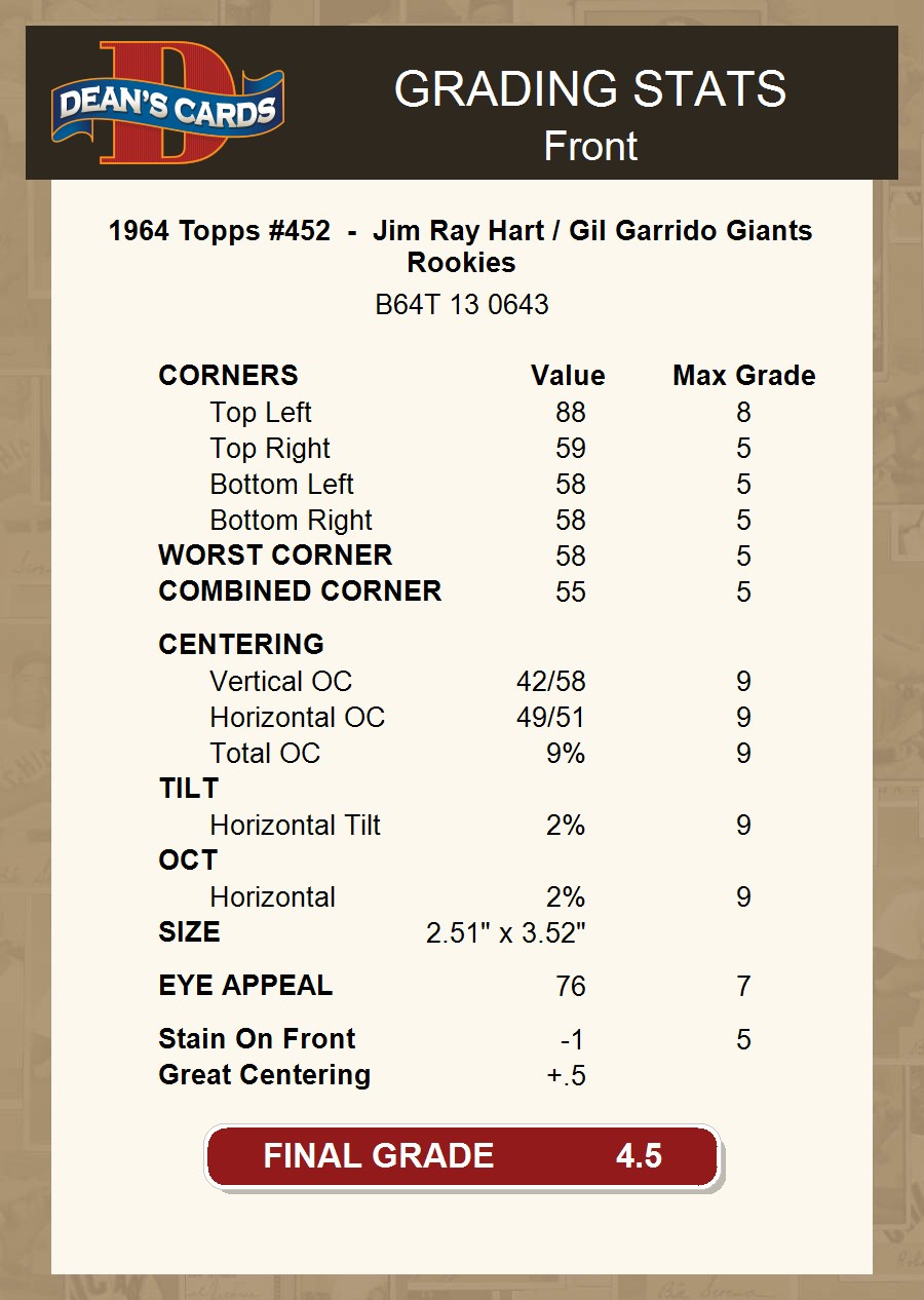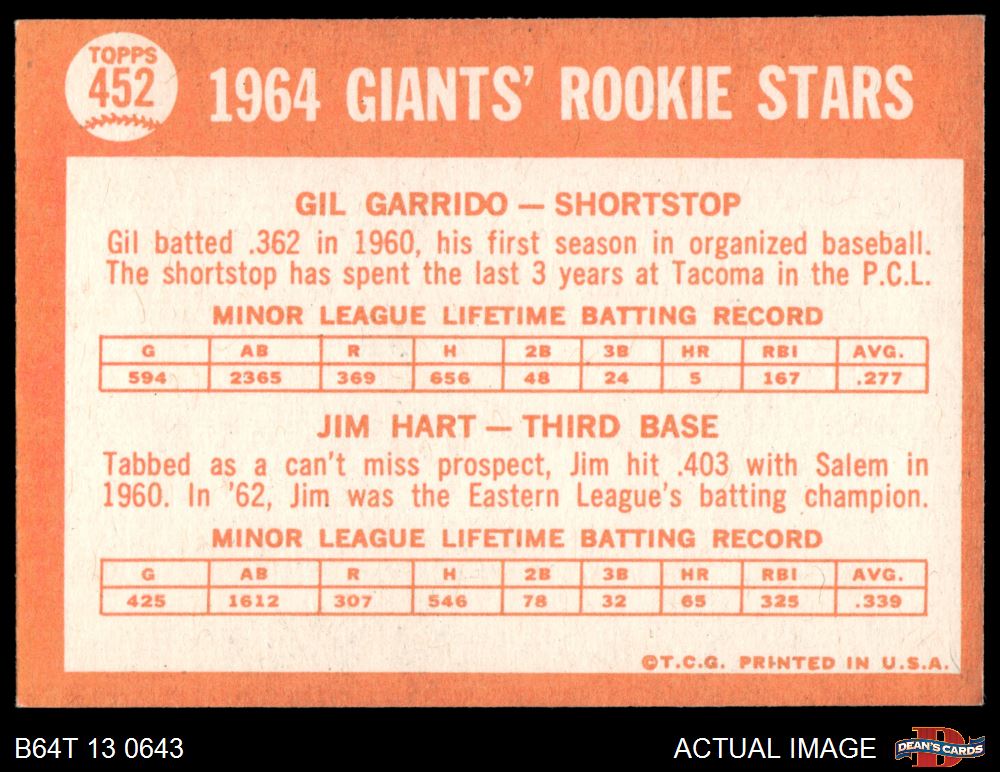 1964 Topps #452 - Jim Ray Hart / Gil Garrido Giants Rookies 4.5 - VG/EX+