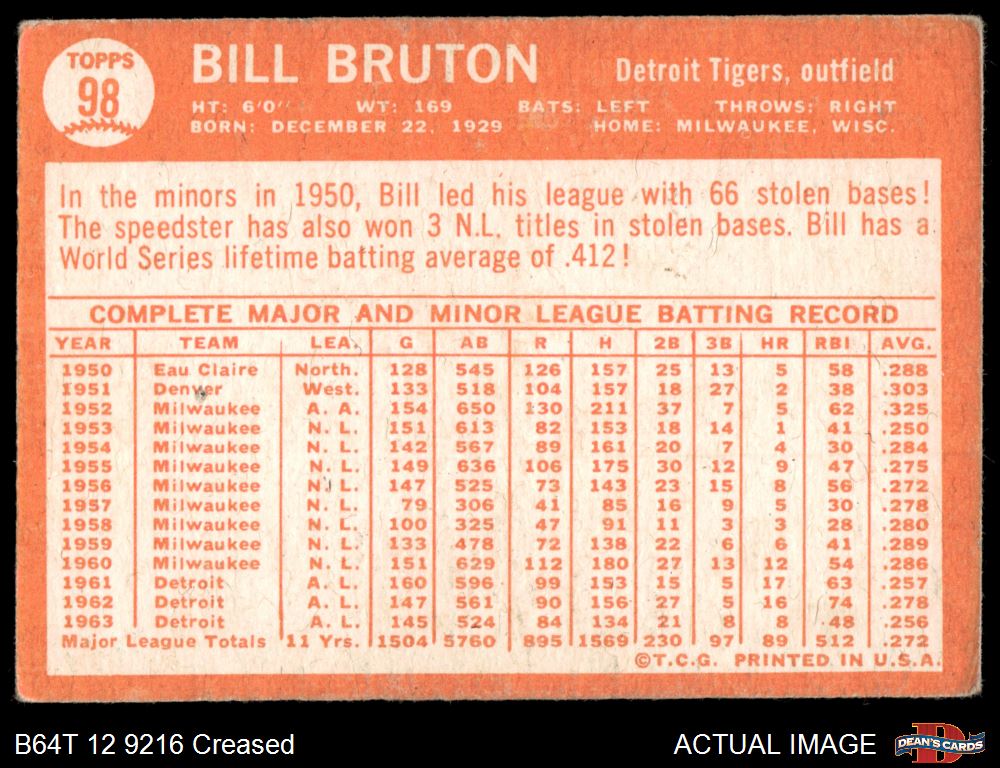 1964 Topps #98 Billy Bruton Front Thumbnail