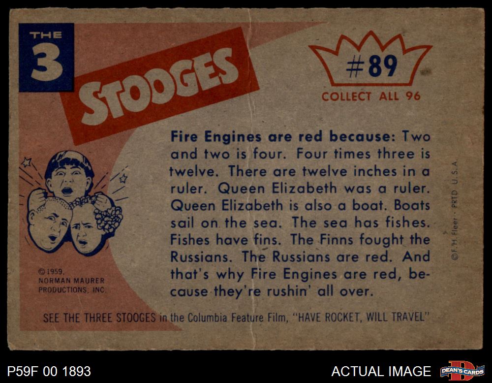 1959 Fleer Three Stooges #89 Why are Fire Engines Red?