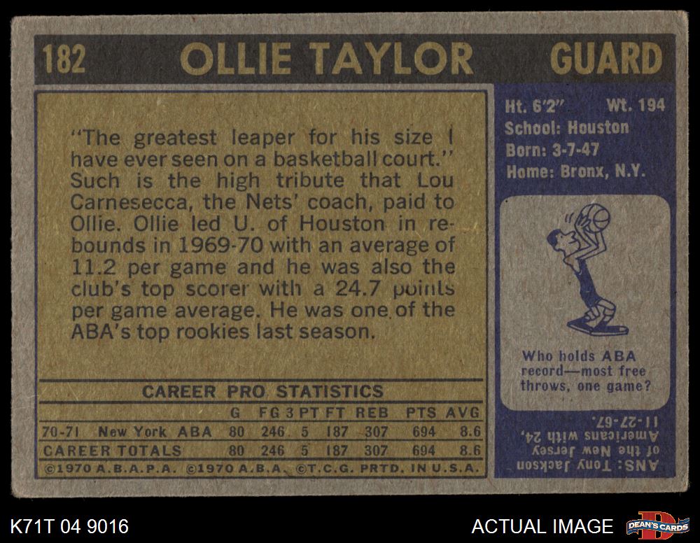 1971 Topps #182 Oliver Taylor