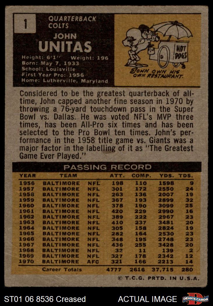 1971 Topps #1 Johnny Unitas 2 - GOOD