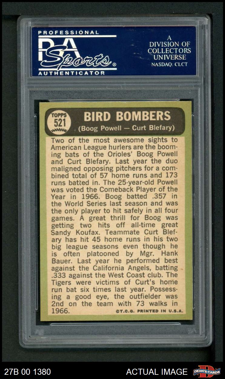1967 Topps #521 - Boog Powell / Curt Blefary Bird Bombers PSA 8 - NM/MT