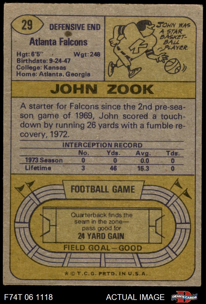 1974 Topps #29 John Zook 4 - VG/EX