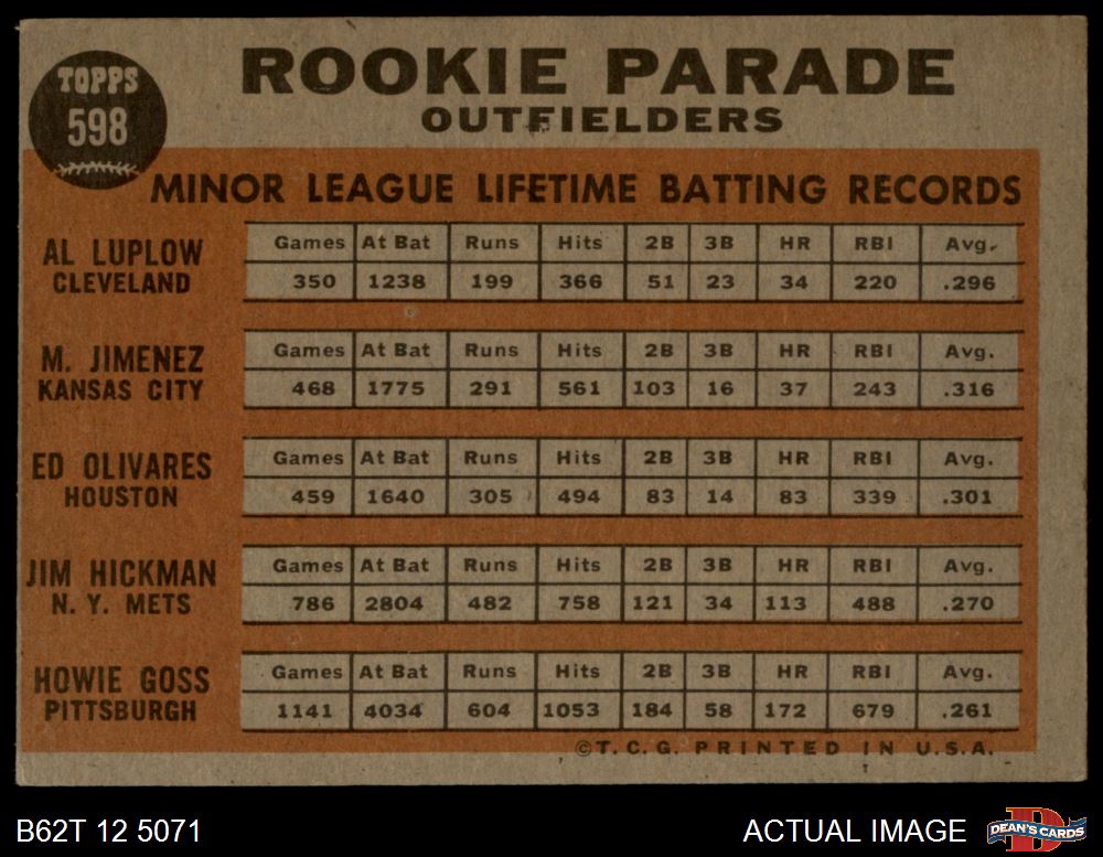 Manny Jimenez / Jim Hickman / Ed Olivares / Howie Goss / Al Luplow (10 available)