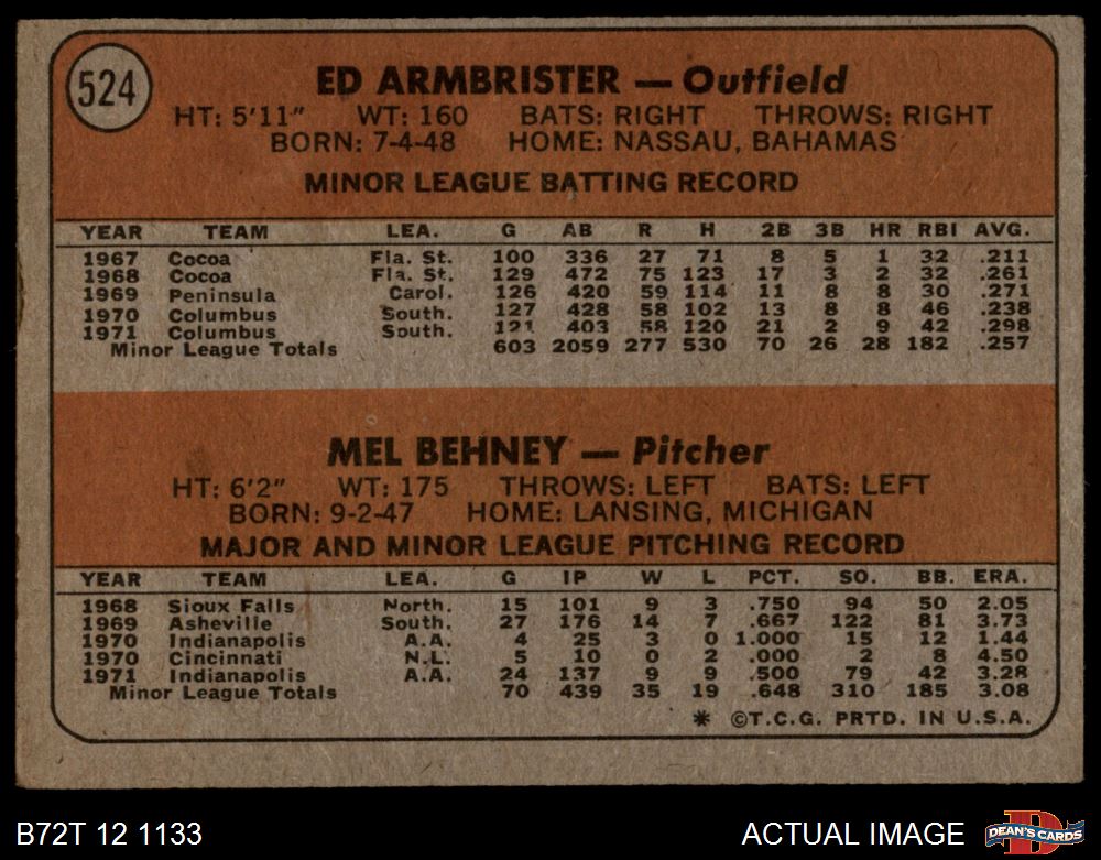 1972 Topps #524 - Ed Ambrister / Mel Behney Reds Rookies 1.5 - FAIR