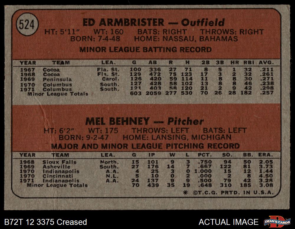 1972 Topps #524 - Ed Ambrister / Mel Behney Reds Rookies 2 - GOOD