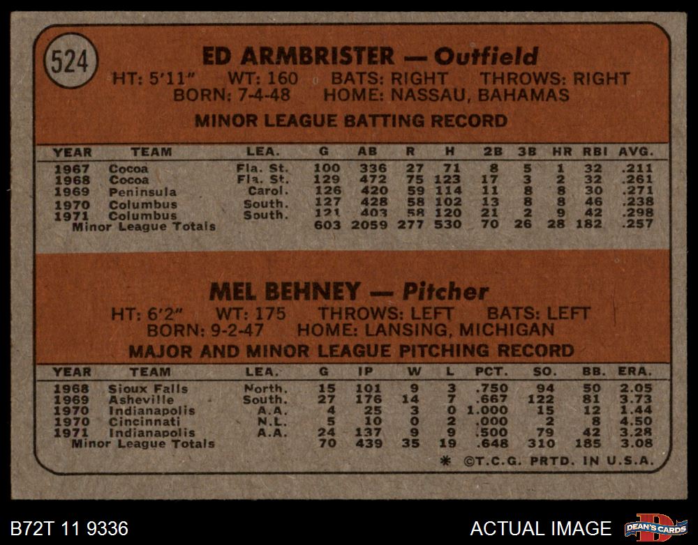 1972 Topps #524 - Ed Ambrister / Mel Behney Reds Rookies 4 - VG/EX
