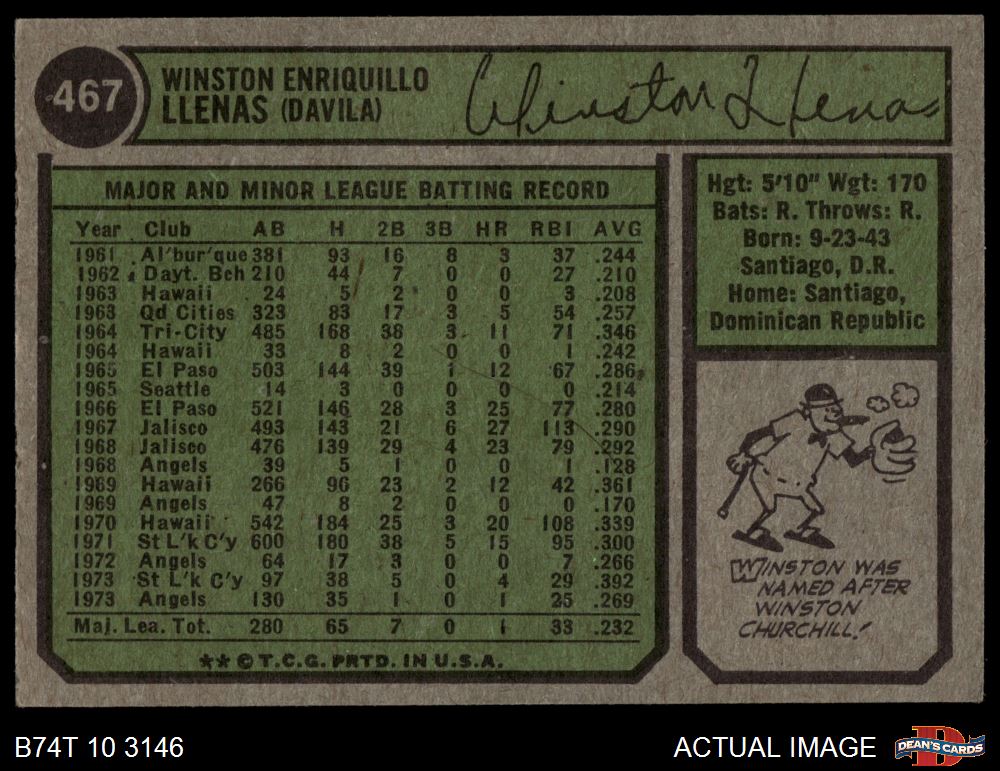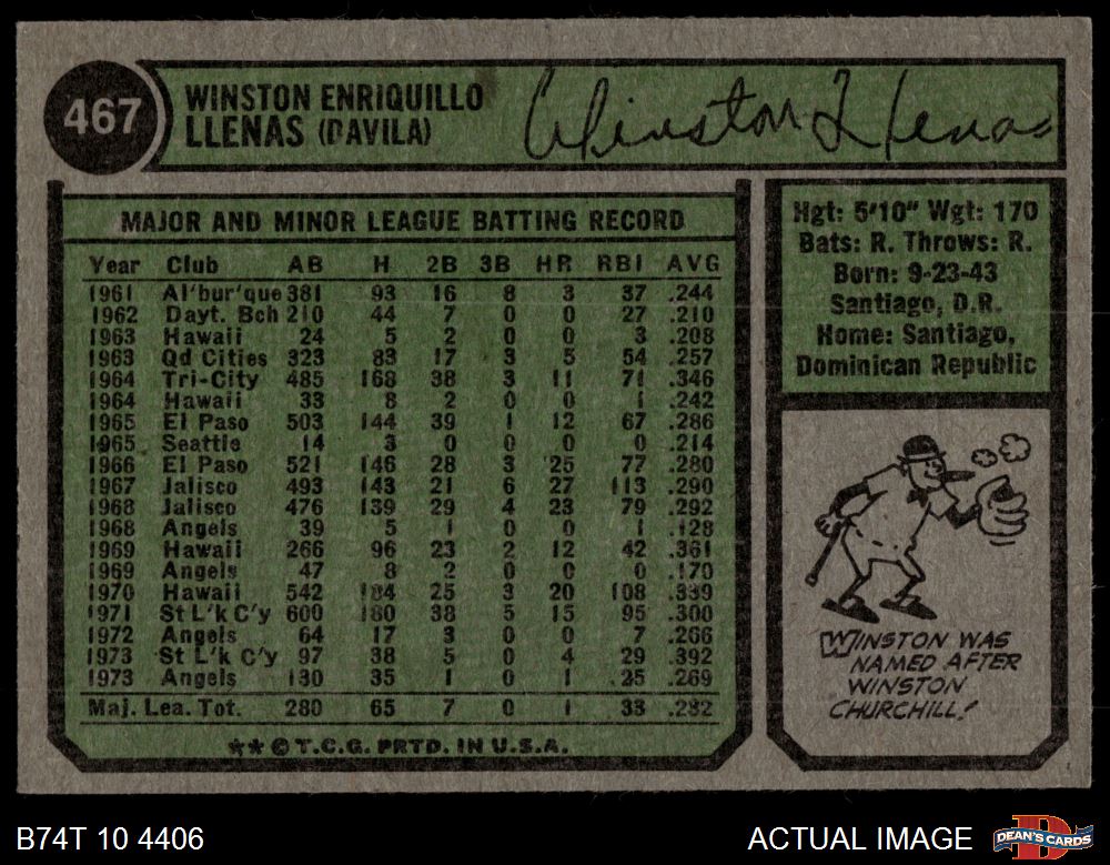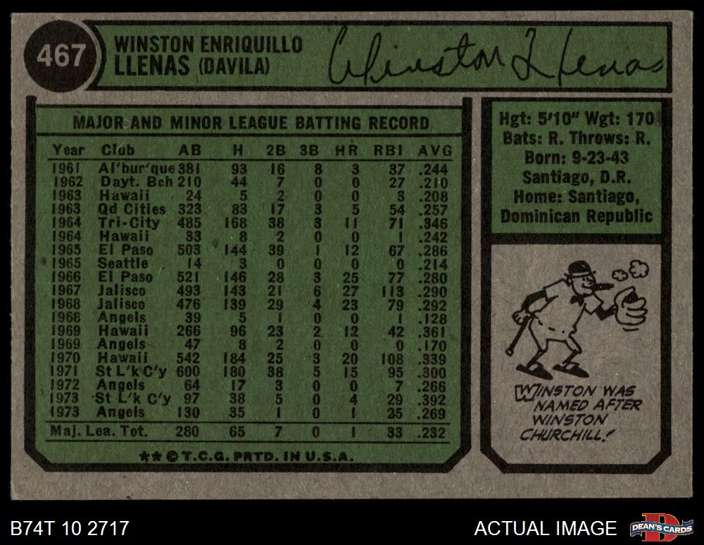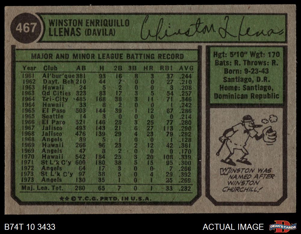 1974 Topps #467 Winston Llenas 4 - VG/EX