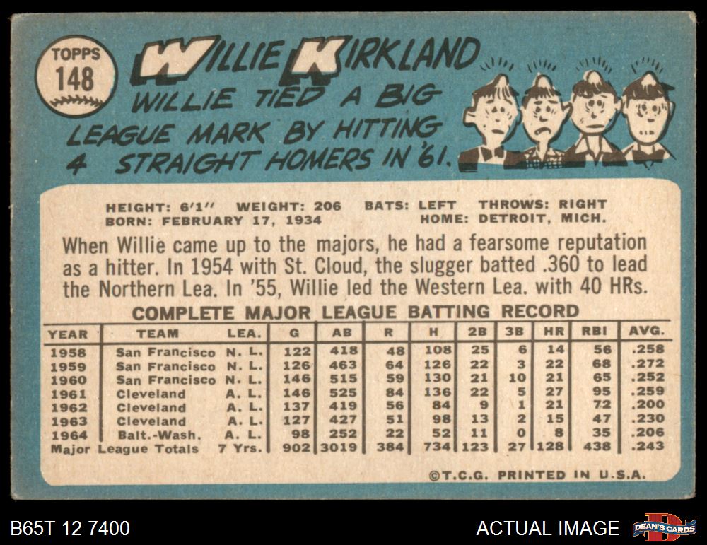 1965 Topps #148 Willie Kirkland 1.5 - FAIR