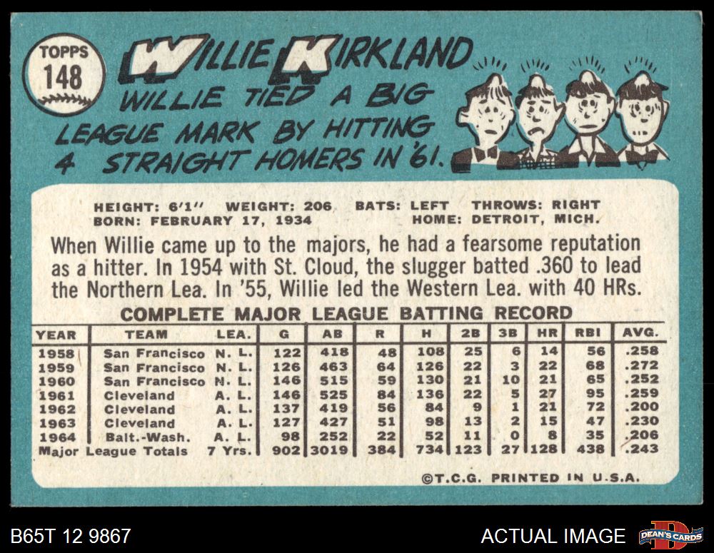 1965 Topps #148 Willie Kirkland 5.5 - EX+