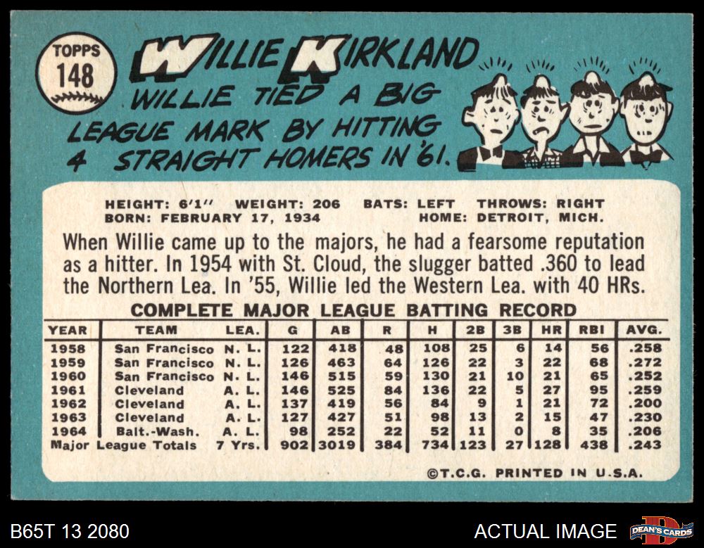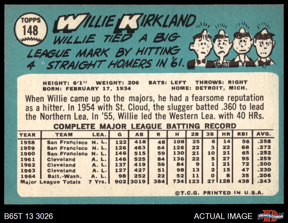 1965 Topps #148 Willie Kirkland 6 - EX/MT