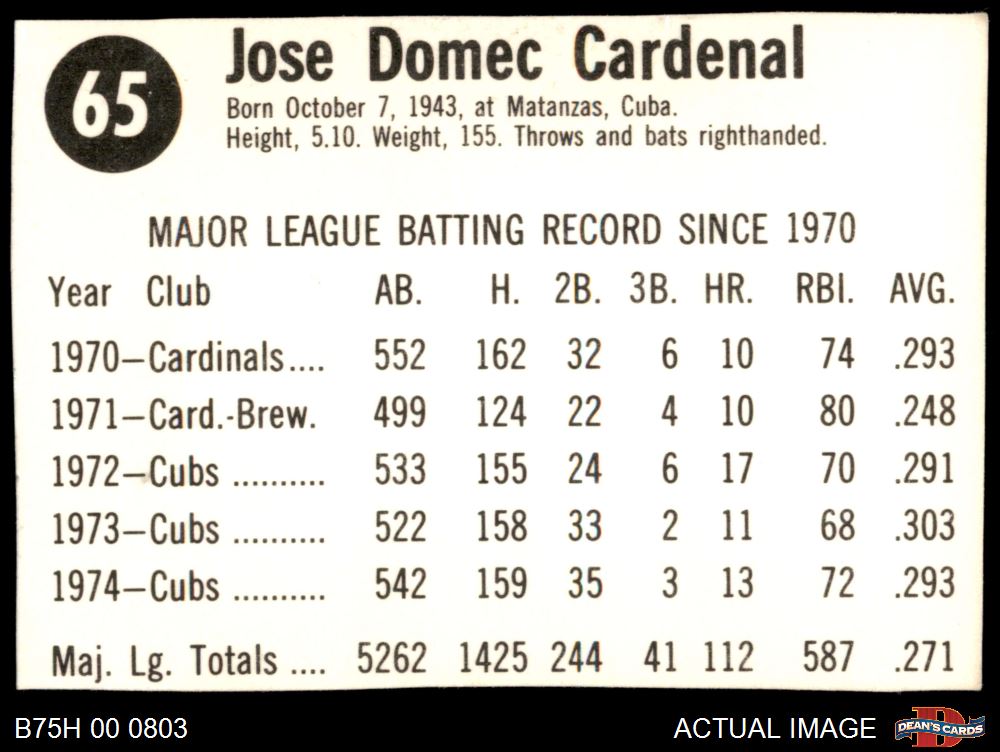 1975 Hostess #65 Jose Cardenal 3 - VG