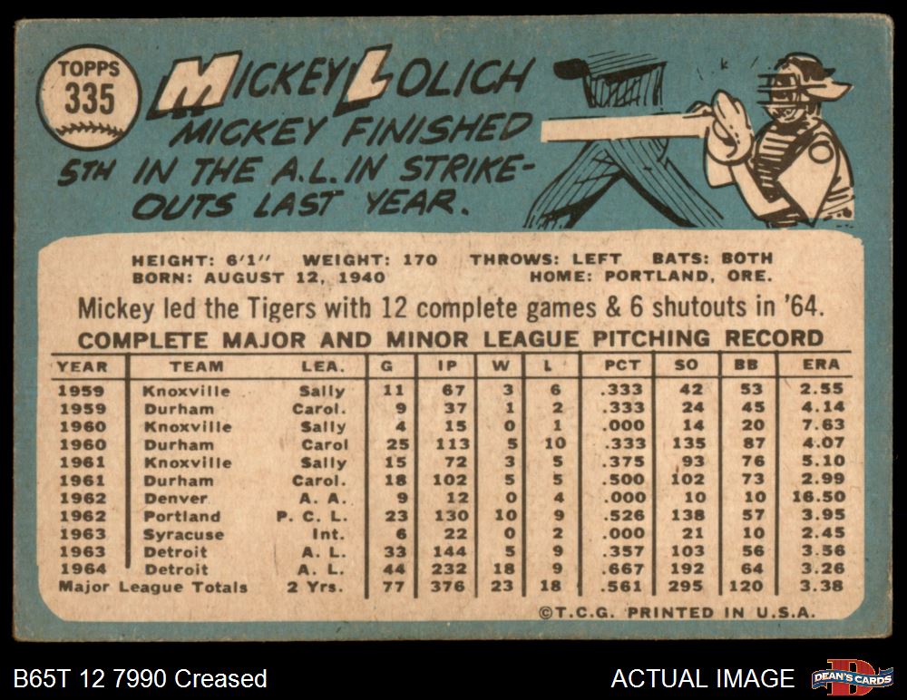 1965 Topps #335 Mickey Lolich