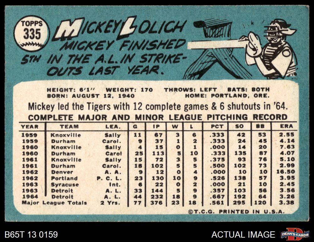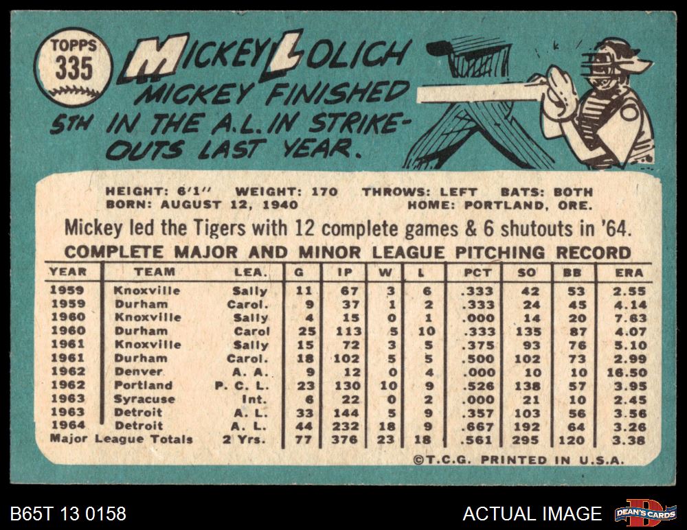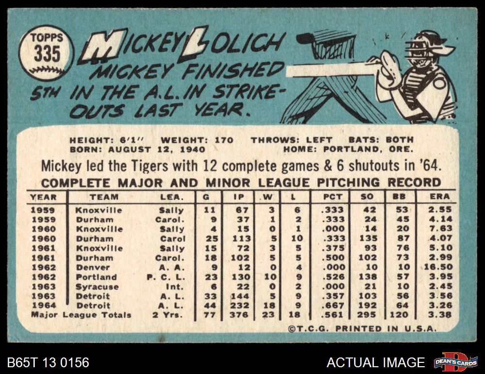 1965 Topps #335 Mickey Lolich 5 - EX