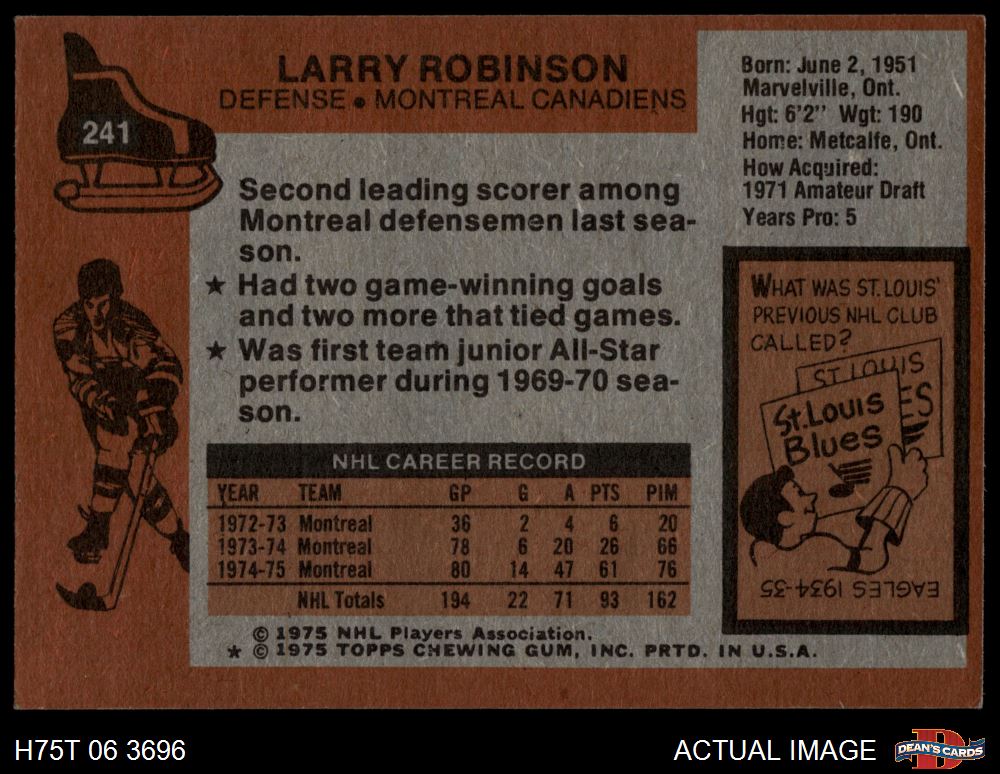 1975 Topps #241 Larry Robinson