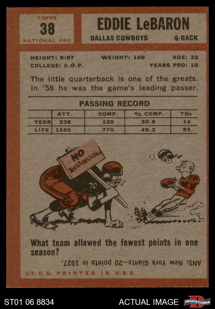 1962 Topps #38 Eddie LeBaron 4 - VG/EX