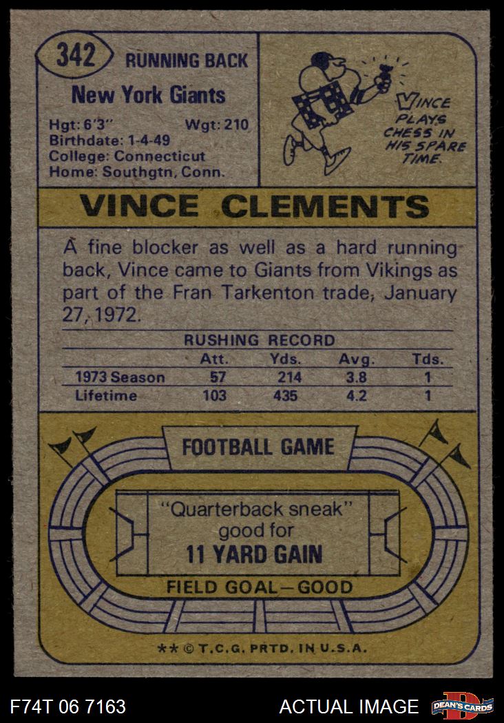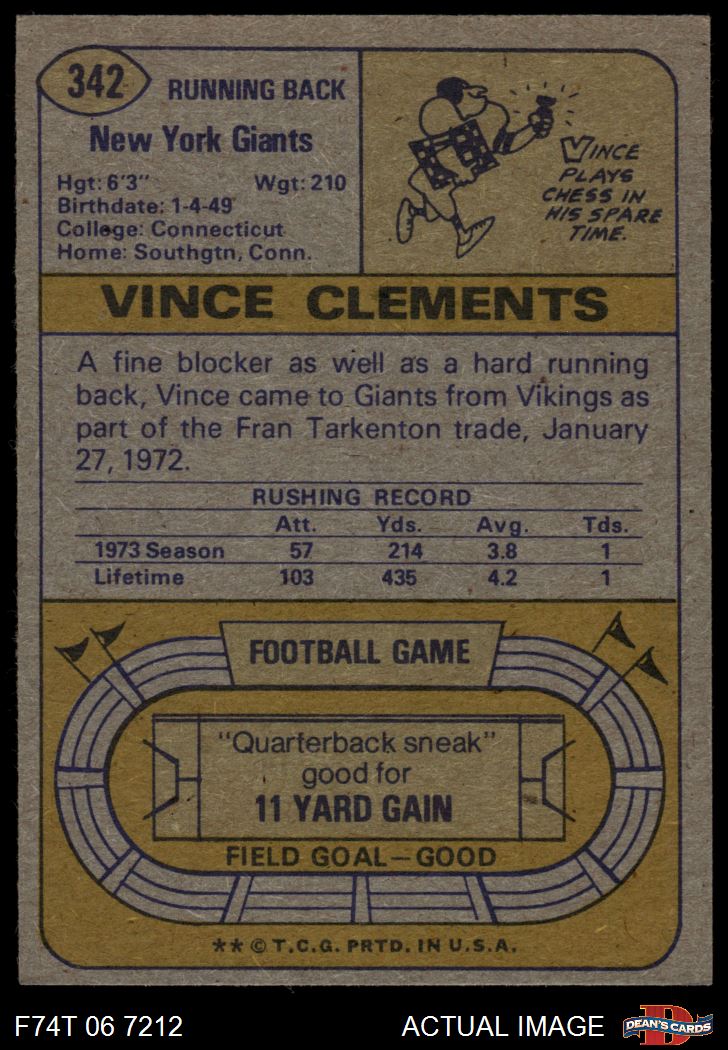 1974 Topps #342 Vince Clements
