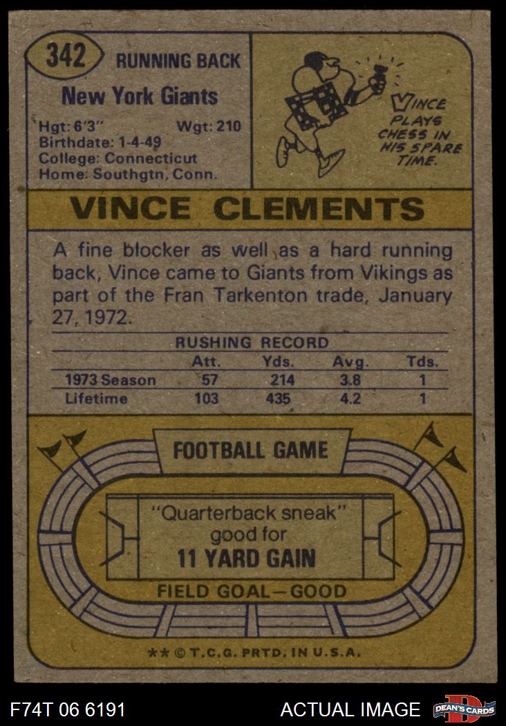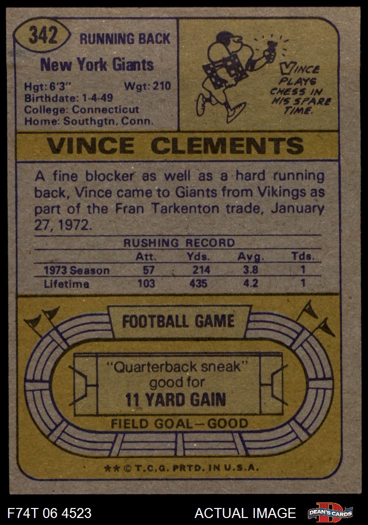 1974 Topps #342 Vince Clements 4 - VG/EX