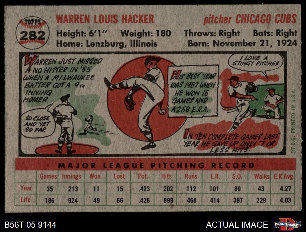 1956 Topps #282 Warren Hacker 5 - EX