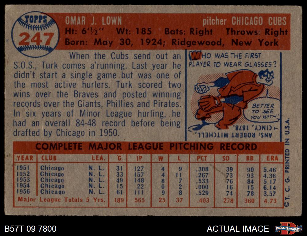 1957 Topps #247 Turk Lown 1 - POOR