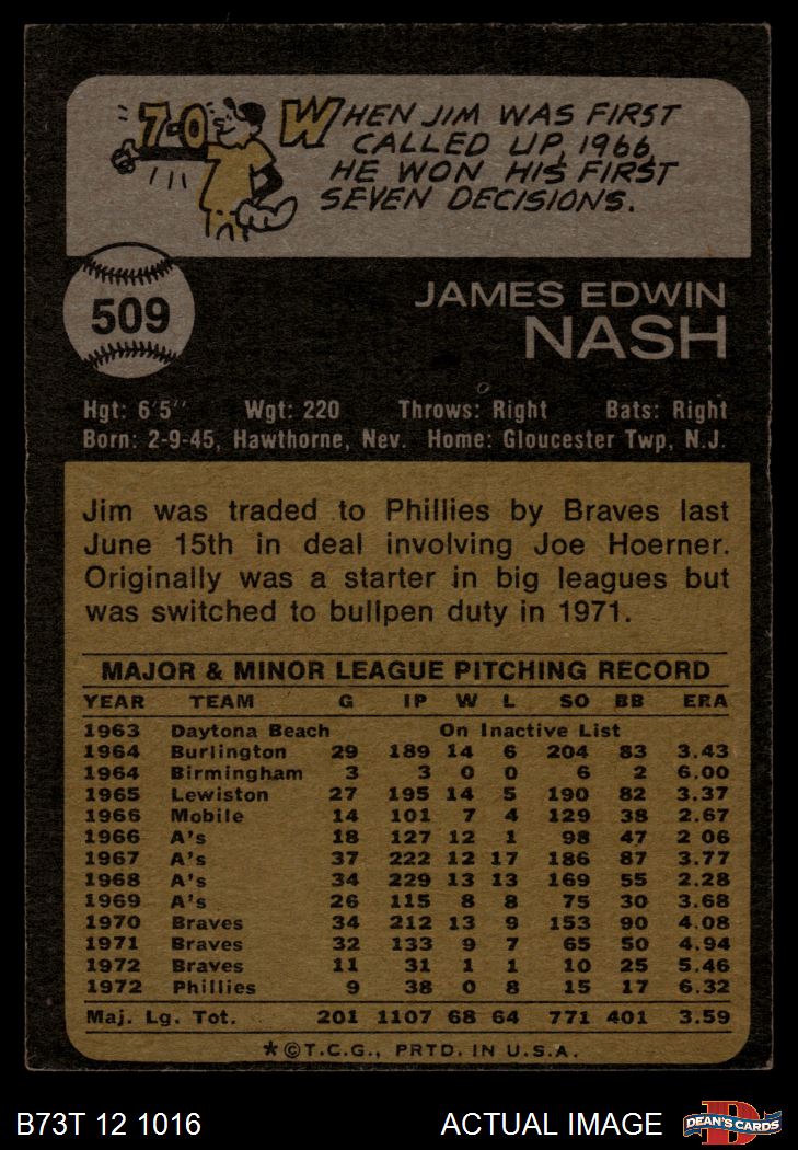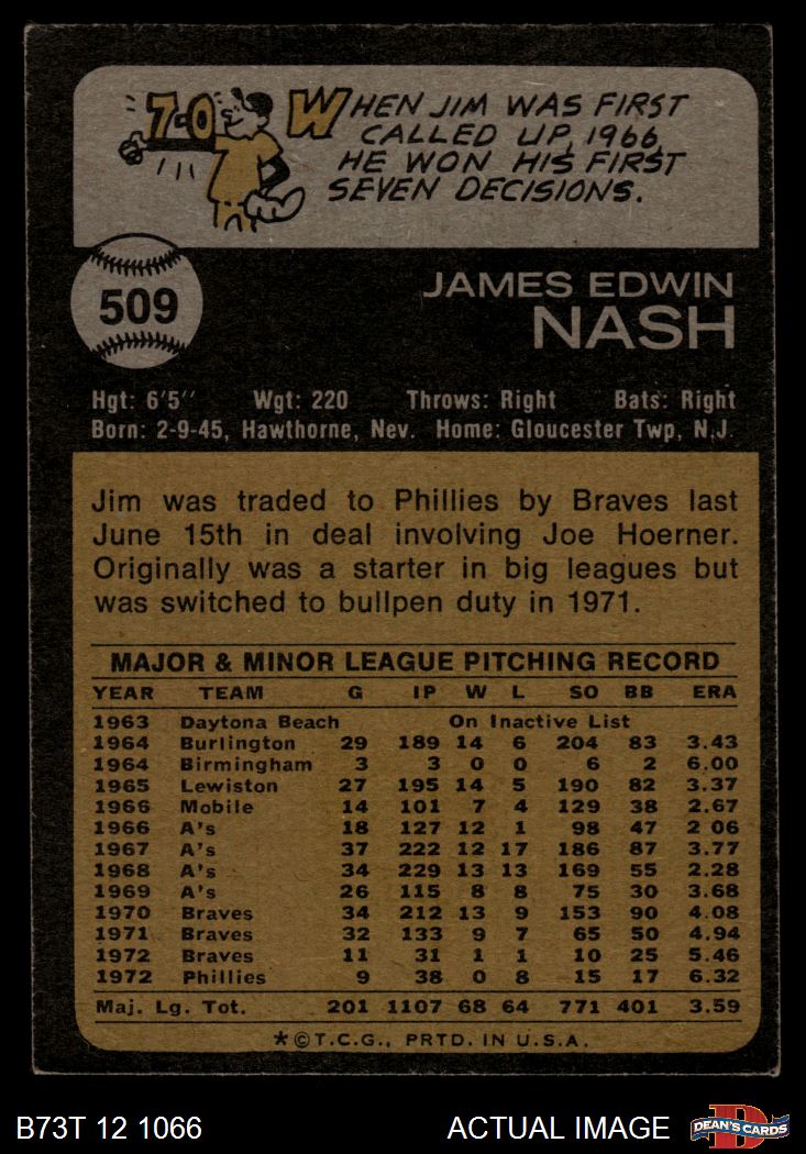 1973 Topps #509 Jim Nash 3 - VG