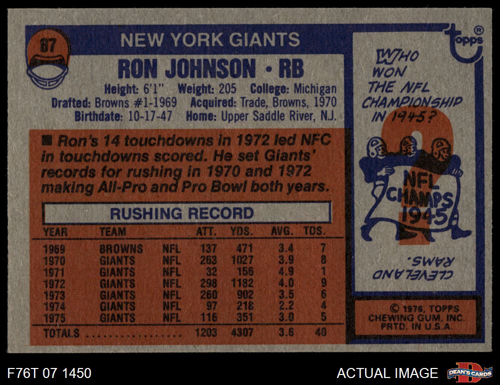 1976 Topps #87 Ron Johnson 6 - EX/MT