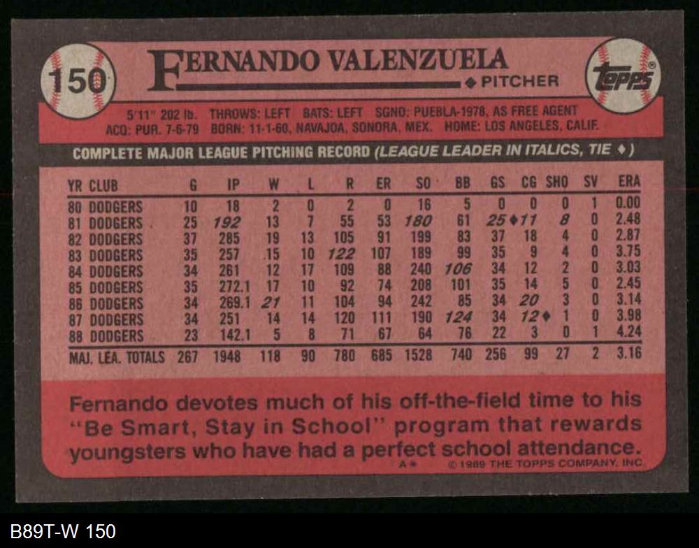 1989 Topps #150 Fernando Valenzuela
