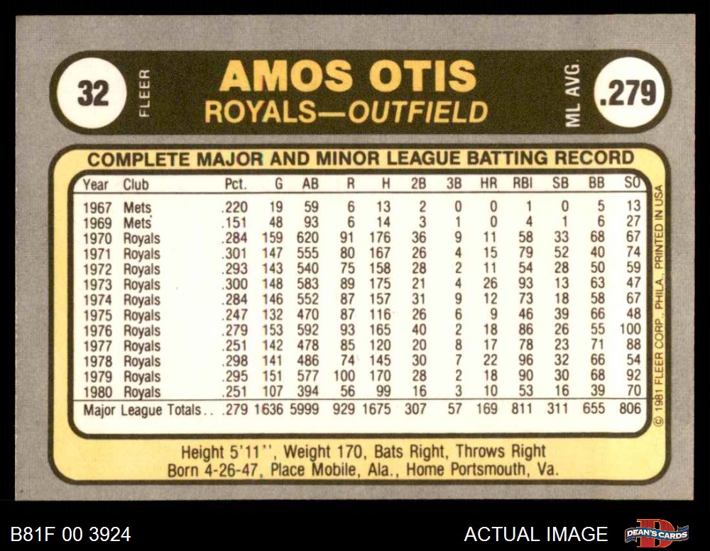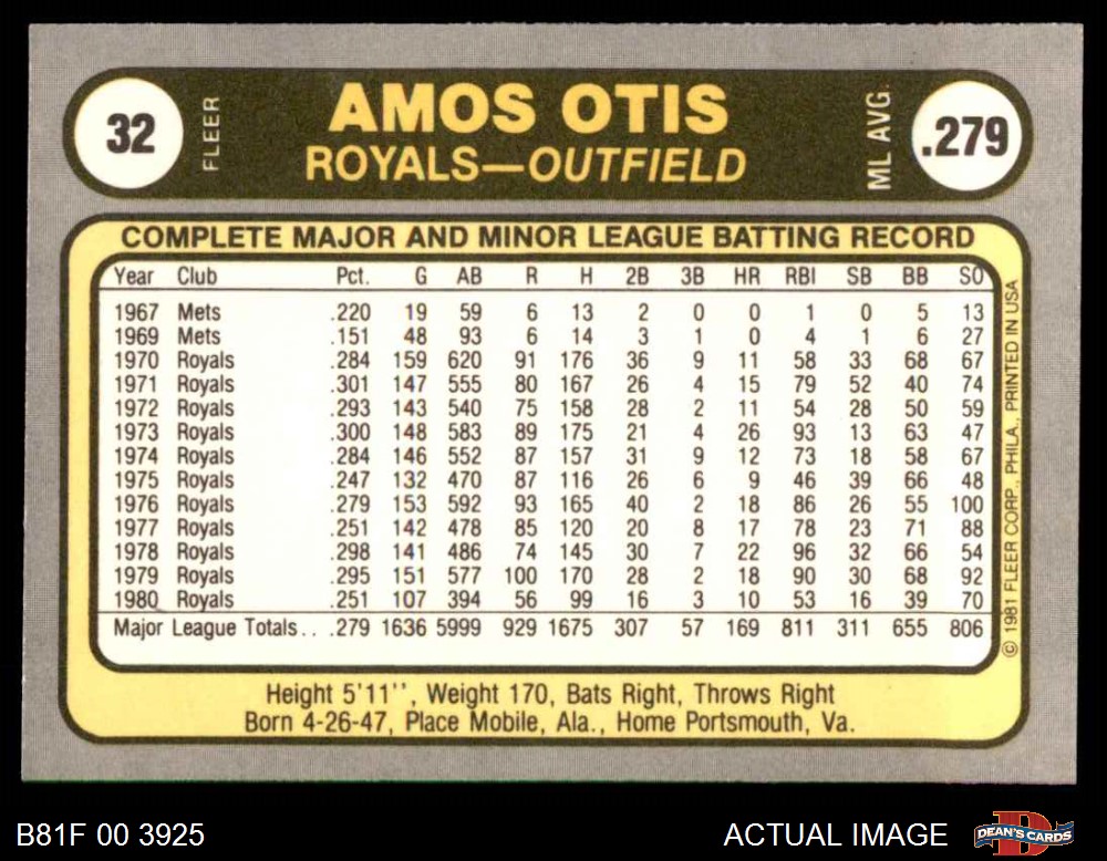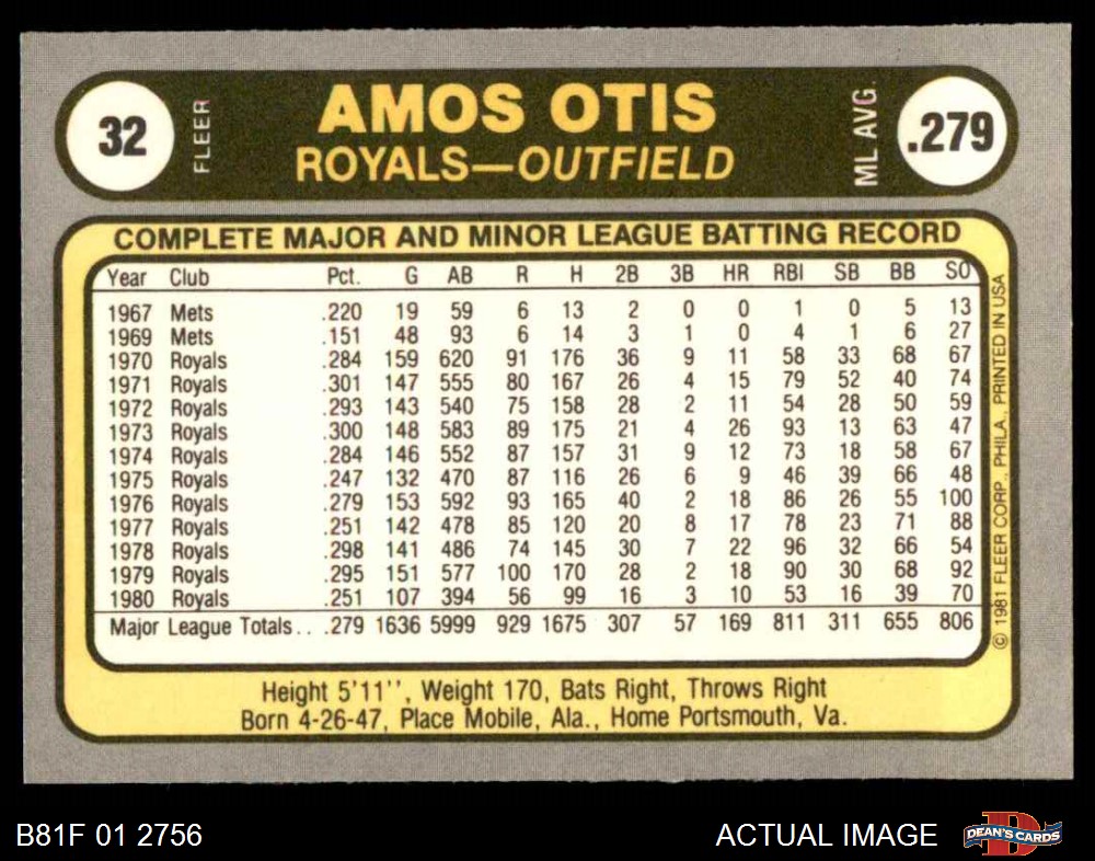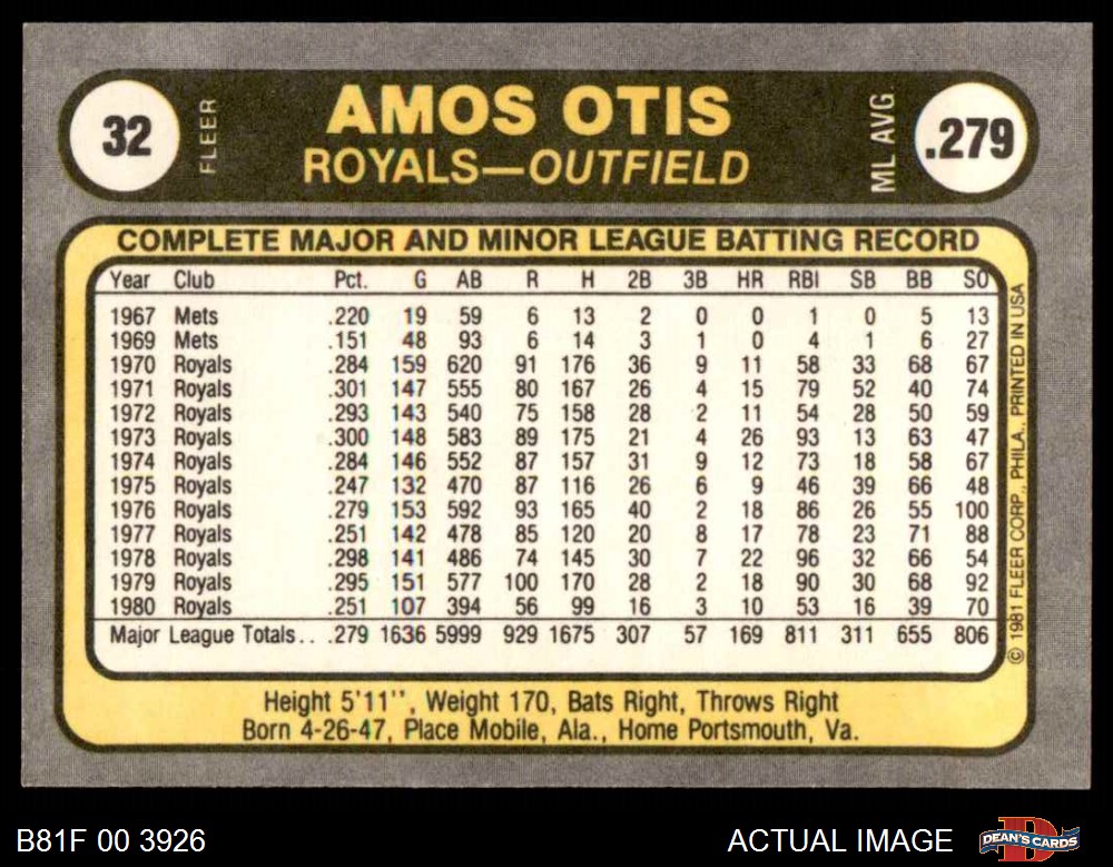 1981 Fleer #32 POR Amos Otis