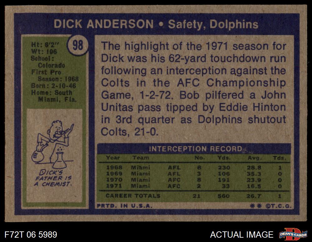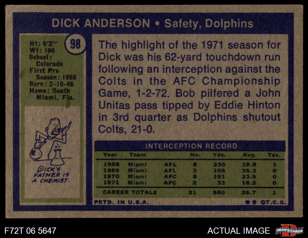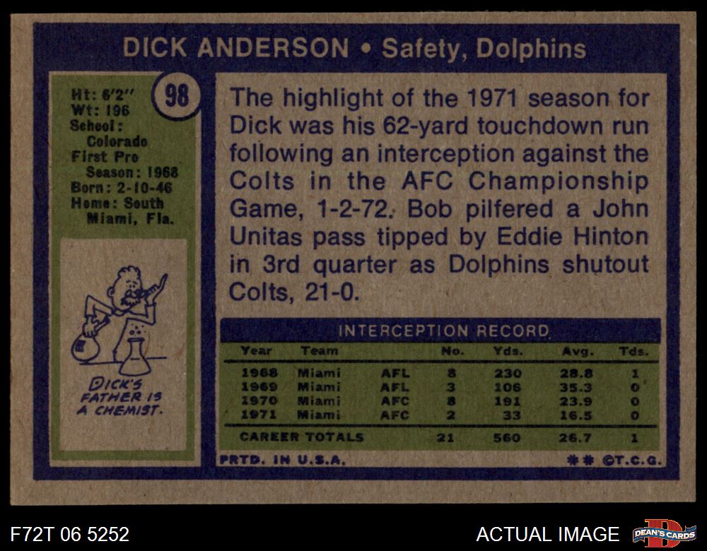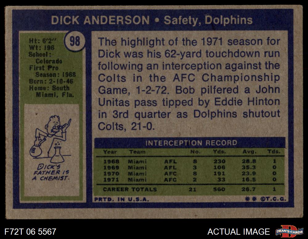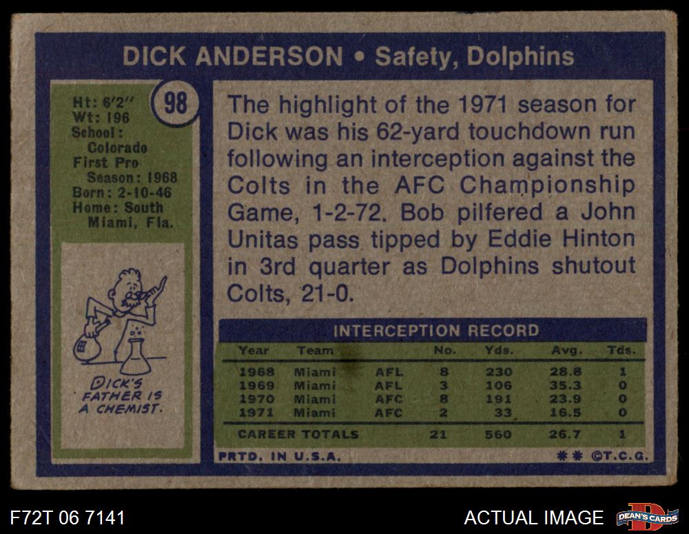 1972 Topps #98 Dick Anderson