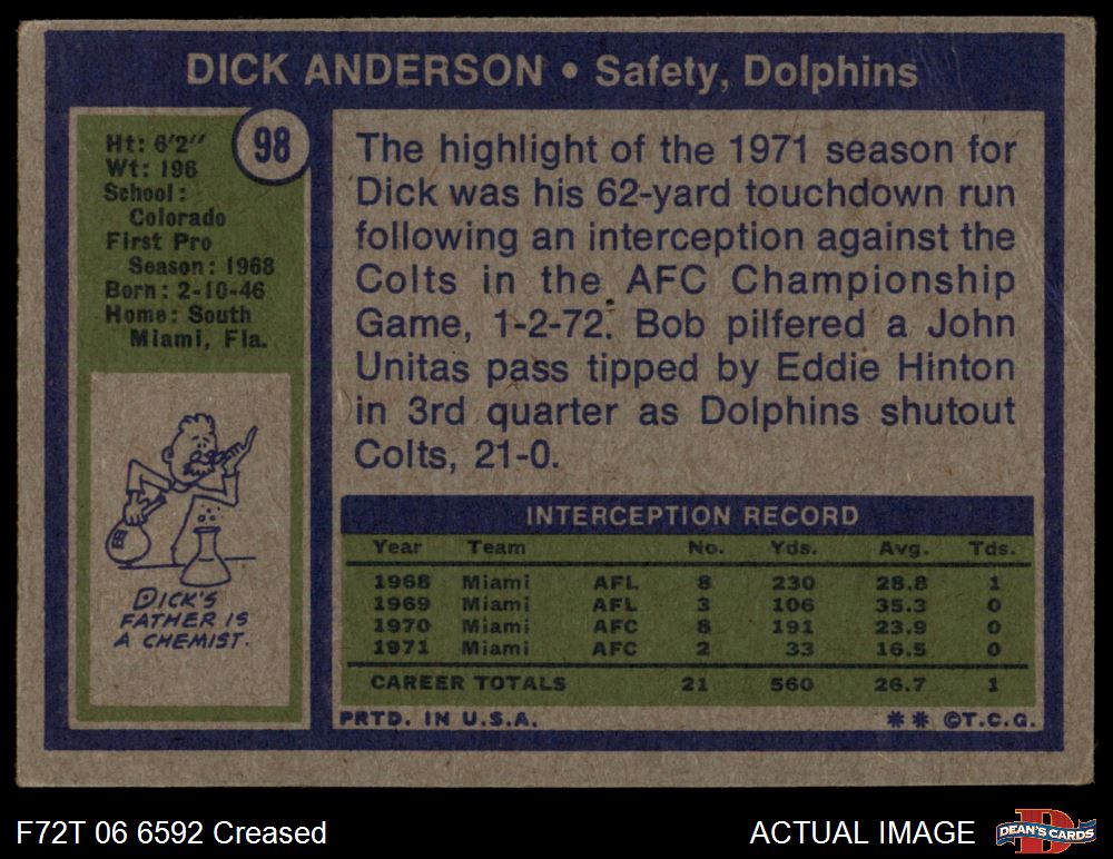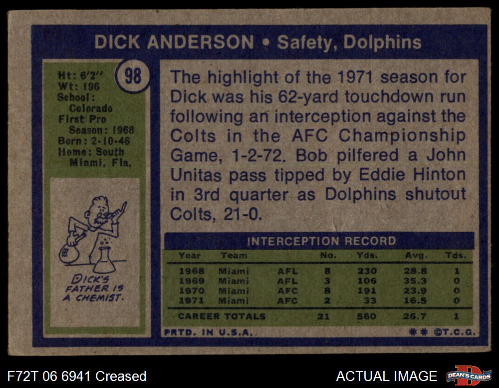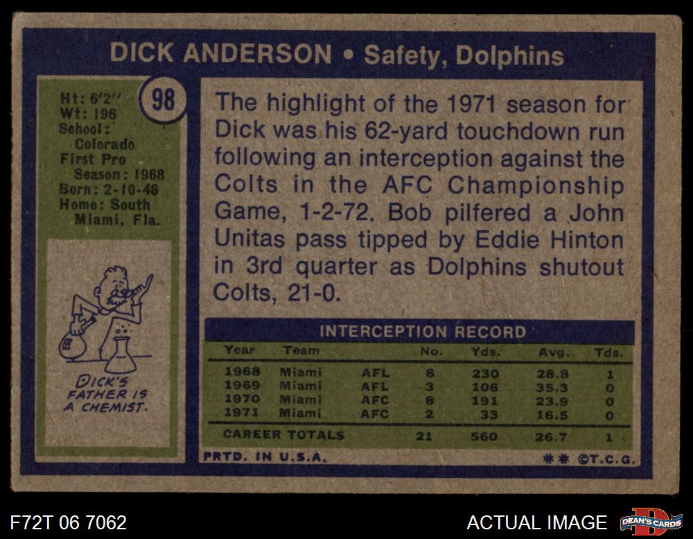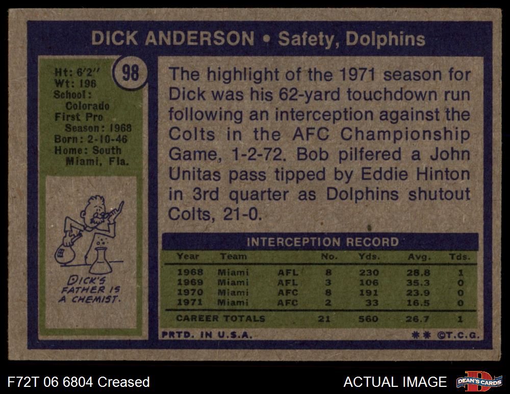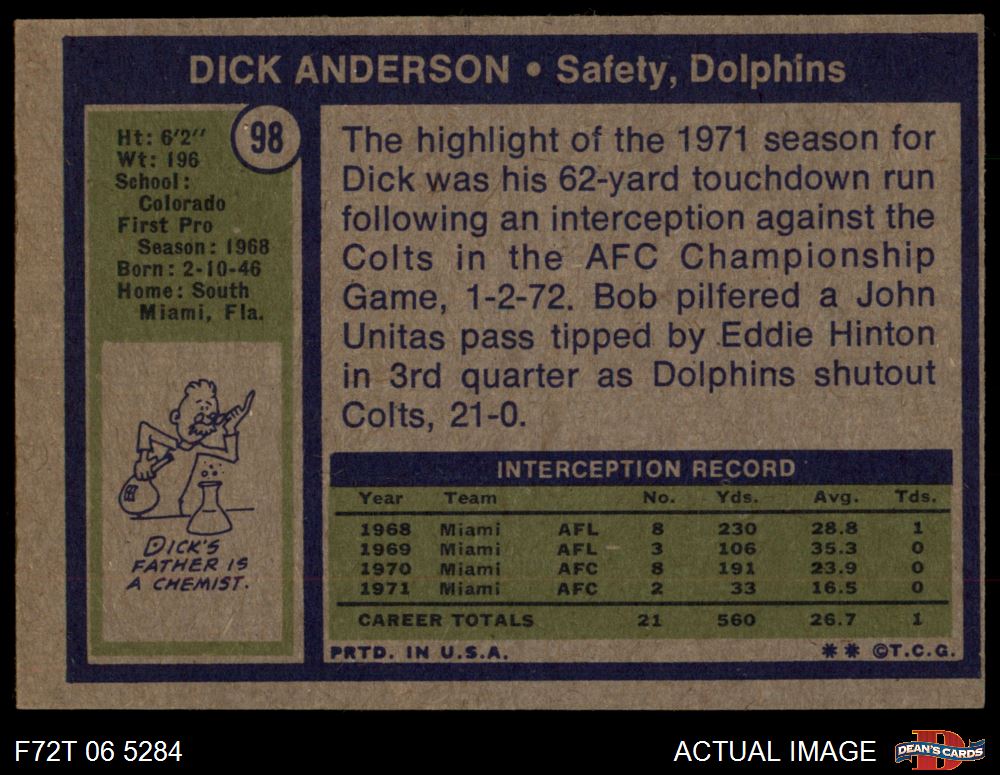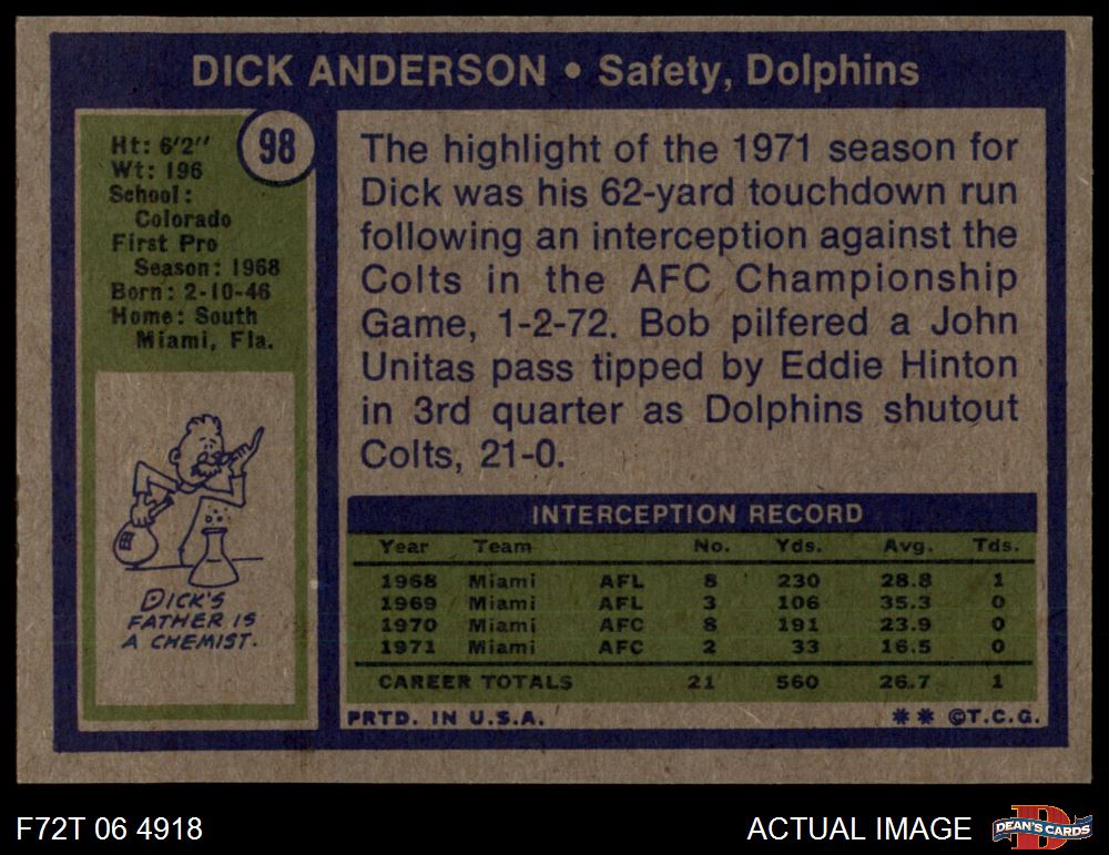 1972 Topps #98 Dick Anderson