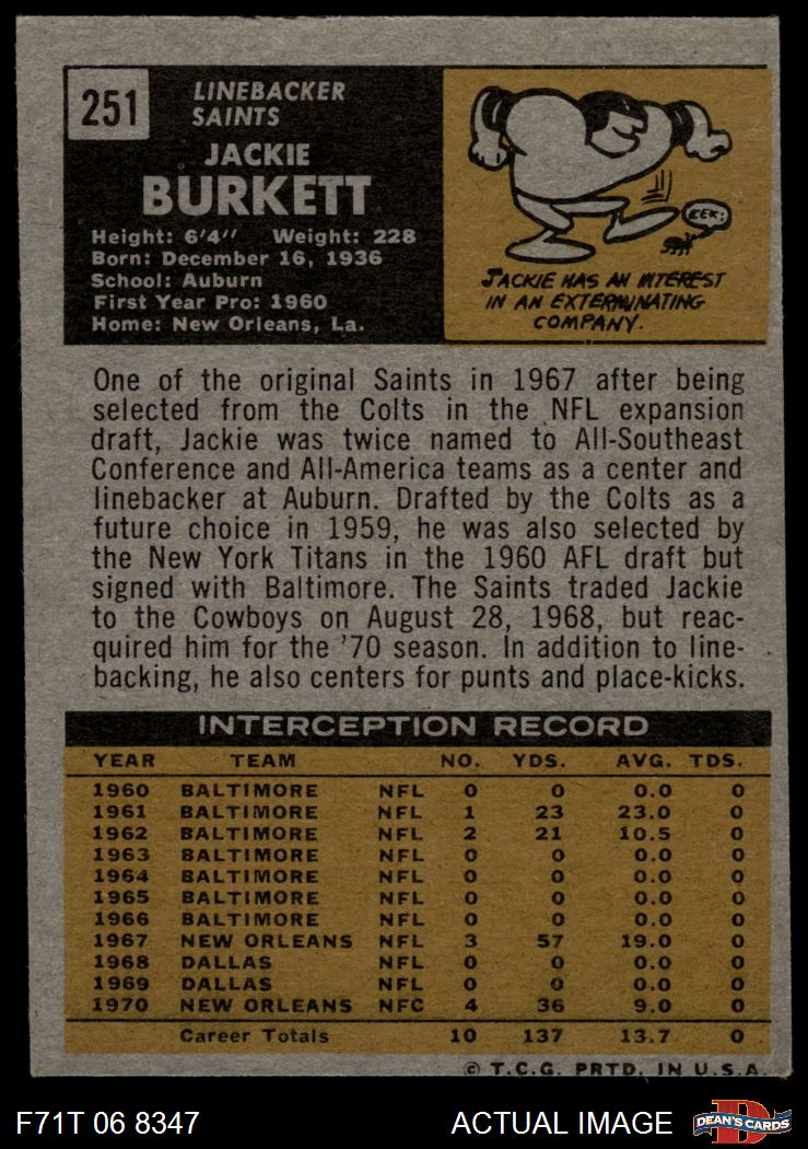 1971 Topps #251 Jackie Burkett Front Thumbnail