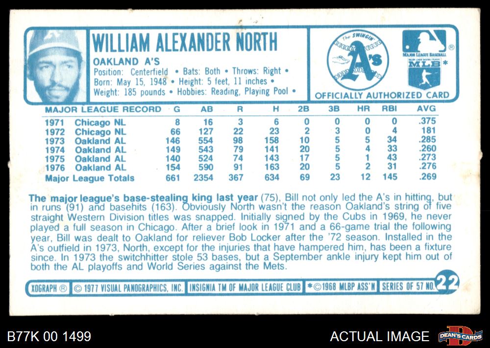 1977 Kellogg's #22 Bill North 2 - GOOD