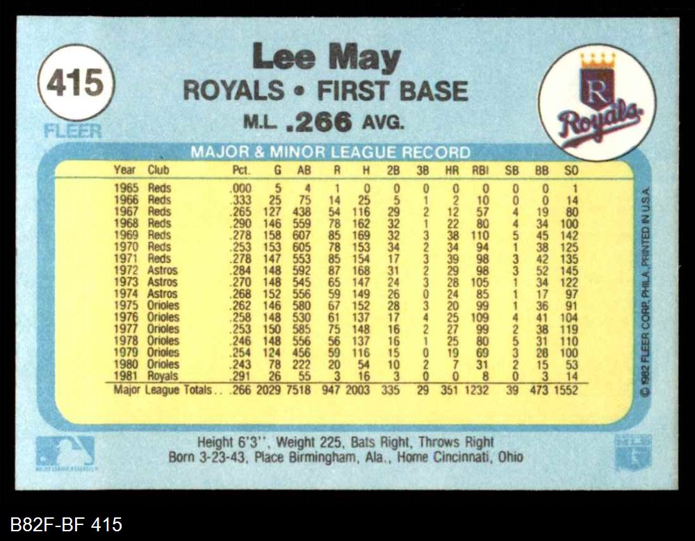 1982 Fleer #415 Lee May